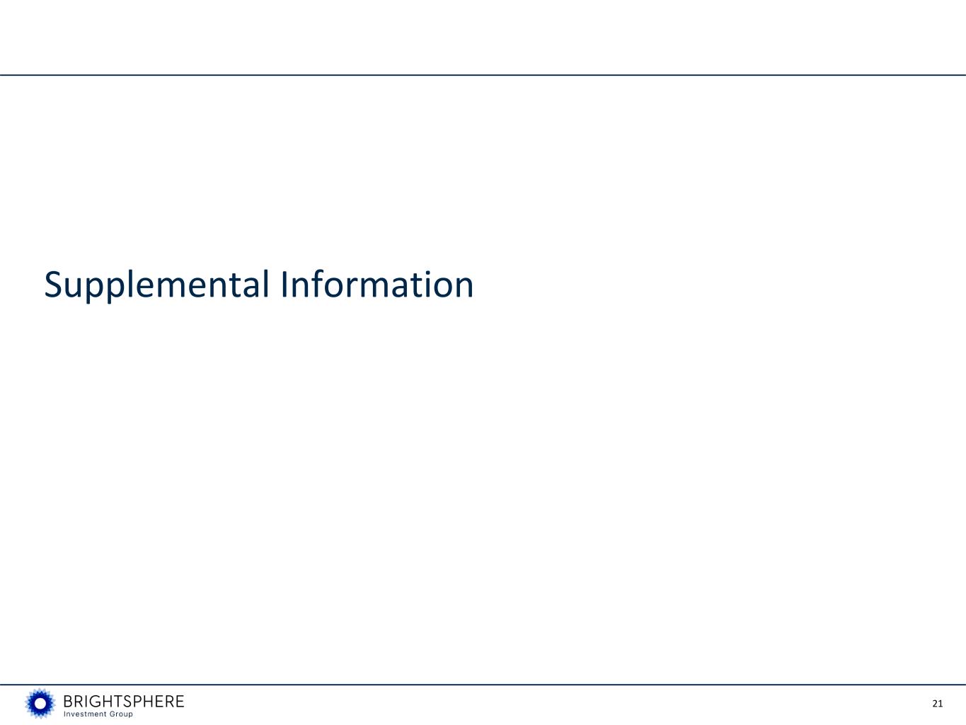 30 Definitions and Additional Notes References to “BrightSphere,” “BSIG” or the “Company” refer to BrightSphere Investment Group Inc.; references to “BSUS” or the “Center” refer to the holding company excluding the Affiliates. BrightSphere currently operates its business through one asset management firm (the “Affiliate”). The Company’s distribution activities are conducted in various jurisdictions through affiliated companies in accordance with local regulatory requirements. The Company uses a non-GAAP performance measure referred to as economic net income (“ENI”) to represent its view of the underlying economic earnings of the business. ENI is used to make resource allocation decisions, determine appropriate levels of investment or dividend payout, manage balance sheet leverage, determine Affiliate variable compensation and equity distributions, and incentivize management. The Company’s ENI adjustments to U.S. GAAP include both reclassifications of U.S. GAAP revenue and expense items, as well as adjustments to U.S. GAAP results, primarily to exclude non-cash, non-economic expenses, or to reflect cash benefits not recognized under U.S. GAAP. The Company re-categorizes certain line items on the income statement to: • exclude the effect of Fund consolidation by removing the portion of Fund revenues, expenses and investment return which is not attributable to its shareholders. • include within management fee revenue any fees paid to Affiliates by consolidated Funds, which are viewed as investment income under U.S. GAAP. • include the Company’s share of earnings from equity-accounted Affiliates within other income, rather than investment income; • treat sales-based compensation as a general and administrative expense, rather than part of fixed compensation and benefits; and • identify separately from operating expenses, variable compensation and Affiliate key employee distributions, which represent Affiliate earnings shared with Affiliate key employees. The Company also makes the following adjustments to U.S. GAAP results to more closely reflect its economic results by: i. excluding non-cash expenses representing changes in the value of Affiliate equity and profit interests held by Affiliate key employees. These ownership interests may in certain circumstances be repurchased by BrightSphere at a value based on a pre-determined fixed multiple of trailing earnings and as such this value is carried on the Company’s balance sheet as a liability. Non-cash movements in the value of this liability are treated as compensation expense under U.S. GAAP. However, any equity or profit interests repurchased by BrightSphere can be used to fund a portion of future variable compensation awards, resulting in savings in cash variable compensation that offset the negative cash effect of repurchasing the equity. ii. excluding non-cash amortization or impairment expenses related to acquired goodwill and other intangibles as these are non-cash charges that do not result in an outflow of tangible economic benefits from the business. iii. excluding capital transaction costs, including the costs of raising debt or equity, gains or losses realized as a result of redeeming debt or equity and direct incremental costs associated with acquisitions of businesses or assets. iv. excluding seed capital and co-investment gains, losses and related financing costs. The net returns on these investments are considered and presented separately from ENI because ENI is primarily a measure of the Company’s earnings from managing client assets, which therefore differs from earnings generated by its investments in Affiliate products, which can be variable from period to period. v. including cash tax benefits associated with deductions allowed for acquired intangibles and goodwill that may not be recognized or have timing differences compared to U.S. GAAP. vi. excluding the results of discontinued operations attributable to controlling interests since they are not part of the Company’s ongoing business, restructuring costs incurred in continuing operations. vii. excluding deferred tax resulting from changes in tax law and expiration of statutes, adjustments for uncertain tax positions, deferred tax attributable to intangible assets and other unusual items not related to current operating results to reflect ENI tax normalization.