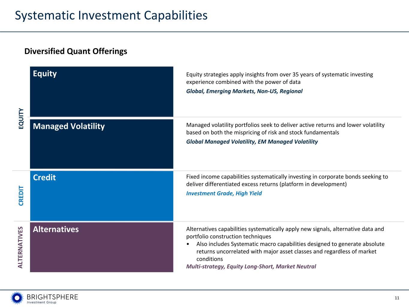 11 Equity strategies apply insights from over 35 years of systematic investing experience combined with the power of data Global, Emerging Markets, Non-US, Regional Managed volatility portfolios seek to deliver active returns and lower volatility based on both the mispricing of risk and stock fundamentals Global Managed Volatility, EM Managed Volatility Fixed income capabilities systematically investing in corporate bonds seeking to deliver differentiated excess returns (platform in development) Investment Grade, High Yield Alternatives capabilities systematically apply new signals, alternative data and portfolio construction techniques • Also includes Systematic macro capabilities designed to generate absolute returns uncorrelated with major asset classes and regardless of market conditions Multi-strategy, Equity Long-Short, Market Neutral Diversified Quant Offerings Managed VolatilityEQ U IT Y CR ED IT Credit Alternatives A LT ER N A TI V ES Systematic Investment Capabilities Equity