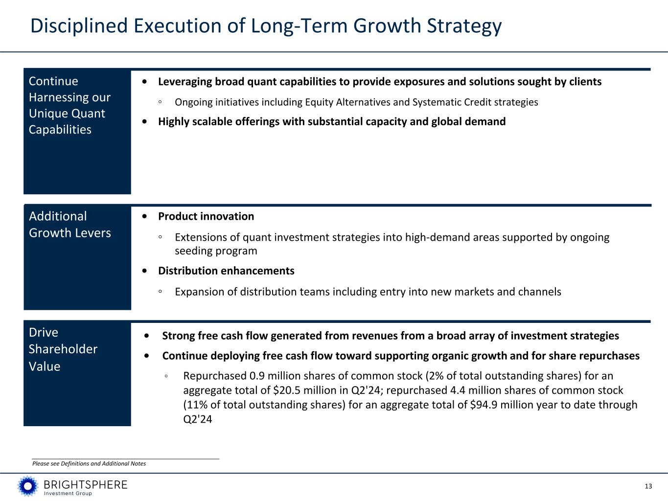 13 • Leveraging broad quant capabilities to provide exposures and solutions sought by clients ◦ Ongoing initiatives including Equity Alternatives and Systematic Credit strategies • Highly scalable offerings with substantial capacity and global demand Disciplined Execution of Long-Term Growth Strategy • Product innovation ◦ Extensions of quant investment strategies into high-demand areas supported by ongoing seeding program • Distribution enhancements ◦ Expansion of distribution teams including entry into new markets and channels • Strong free cash flow generated from revenues from a broad array of investment strategies • Continue deploying free cash flow toward supporting organic growth and for share repurchases ◦ Repurchased 0.9 million shares of common stock (2% of total outstanding shares) for an aggregate total of $20.5 million in Q2'24; repurchased 4.4 million shares of common stock (11% of total outstanding shares) for an aggregate total of $94.9 million year to date through Q2'24 Continue Harnessing our Unique Quant Capabilities Additional Growth Levers Drive Shareholder Value __________________________________________________________ Please see Definitions and Additional Notes
