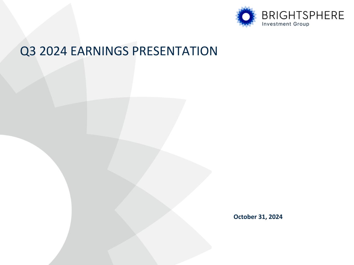 2 Dividend Declaration The Company’s Board of Directors approved a quarterly interim dividend of $0.01 per share payable on December 27, 2024 to shareholders of record as of the close of business on December 13, 2024. Conference Call Dial-in The Company will hold a conference call and simultaneous webcast to discuss the results at 11:00 a.m. Eastern Time on October 31, 2024. To listen to the call or view the webcast, participants should: Dial-in: Toll Free Dial-in Number: (800) 715-9871 International Dial-in Number: (646) 307-1963 Conference ID: 9046067 Link to Webcast: https://events.q4inc.com/attendee/257771457 Dial-in Replay: A replay of the call will be available beginning approximately one hour after its conclusion either on BrightSphere’s website, at http://ir.bsig.com or at: Toll Free Dial-in Number: (800) 770-2030 International Dial-in Number: (609) 800-9909 Conference ID: 9046067 About BrightSphere BrightSphere is a global asset management holding company with one operating subsidiary, Acadian Asset Management, with approximately $120 billion of assets under management as of September 30, 2024. Through Acadian, BrightSphere offers institutional investors across the globe access to a wide array of leading quantitative and solutions-based strategies designed to meet a range of risk and return objectives. For more information, please visit BrightSphere’s website at www.bsig.com. Information that may be important to investors will be routinely posted on our website.