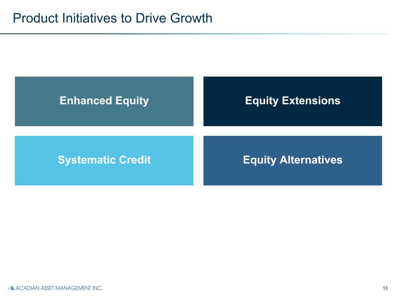 13 Product Initiatives to Drive Growth Enhanced Equity Equity Extensions Systematic Credit Equity Alternatives
