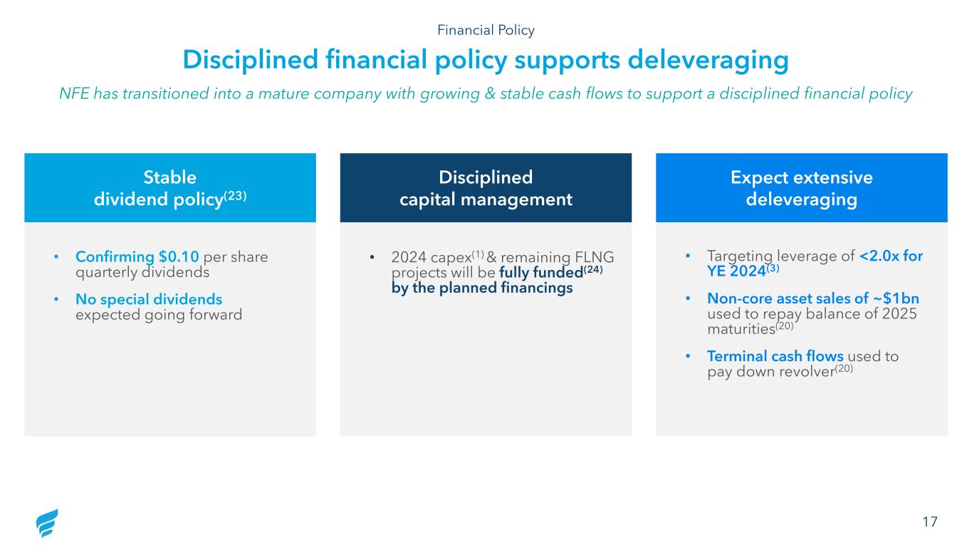 High-volume Brazil terminals coming online Project Updates 16 Barcarena Vast amount of organic growth potential from Brazil projects coming online this year(21) NTS Pipeline TAG Pipeline TBG Pipeline Expected Demand: 3-5 MTPA • Norsk Hydro (BBB/Ba3) serves as anchor customer with 15-year GSA • Sole natural gas supply source in region • Margin profile similar to other NFE terminals with ~4-5 xgreater volume potential • 624 MW power plant under construction; 25-year PPA starting 2025 generating significant fixed revenue Barcarena • High volume terminal with vast margin potential • Connected pipeline supports incremental volume sales with no capex(1) requirement • Takes advantage of declining gas imports from Bolivia & oil-derivative fuels for “stranded” demand Santa Catarina Expected Demand: 3-5 MTPA Santa Catarina