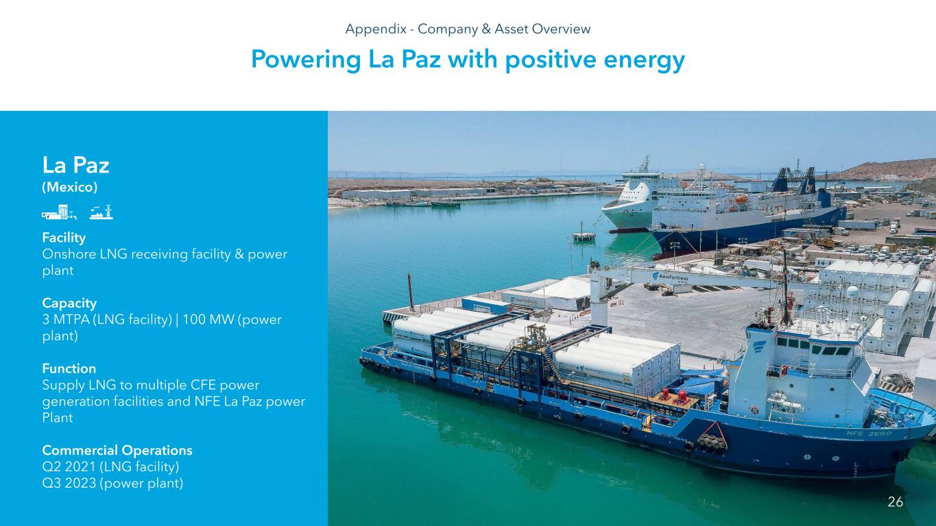 Bringing LNG to southern Brazil 25 Appendix - Company & Asset Overview Santa Catarina (Brazil) Facility FSRU and associated infrastructure Capacity 5.9 MTPA Function Supply gas into the local power and industrial markets and be connected to existing inland Transportadora Brasileria Gasoduto Bolivia-Brasil pipeline Commercial Operations(21) 1Q 2024