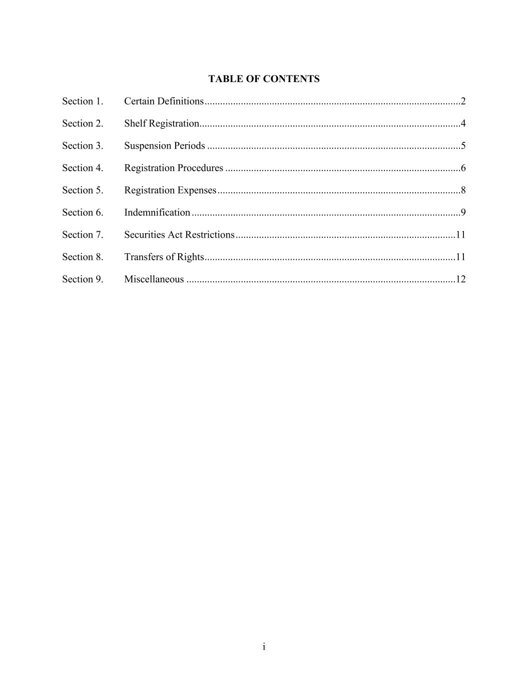 i TABLE OF CONTENTS Section 1. Certain Definitions ...................................................................................................2 Section 2. Shelf Registration.....................................................................................................4 Section 3. Suspension Periods ..................................................................................................5 Section 4. Registration Procedures ...........................................................................................6 Section 5. Registration Expenses ..............................................................................................8 Section 6. Indemnification ........................................................................................................9 Section 7. Securities Act Restrictions .....................................................................................11 Section 8. Transfers of Rights .................................................................................................11 Section 9. Miscellaneous ........................................................................................................12