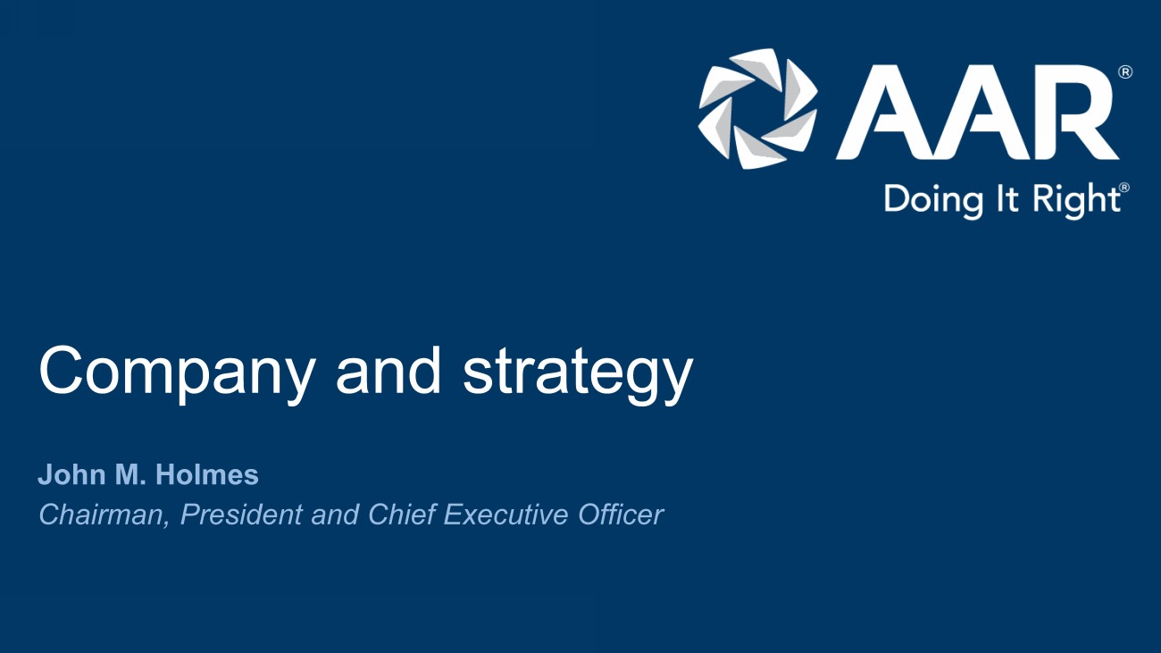 © 2023 AAR CORP. All rights reserved worldwide. 3 Agenda Company and strategy John M. Holmes Market overview and position Chris Jessup Operations: Parts Supply: Used Serviceable Material Sal Marino Parts Supply: Distribution Frank Landrio Break Repair & Engineering Tom Hoferer Integrated Solutions Nicholas Gross Trax aviation software Jose Almeida / Andrew Schmidt Financial overview Sean Gillen Closing comments and Q&A