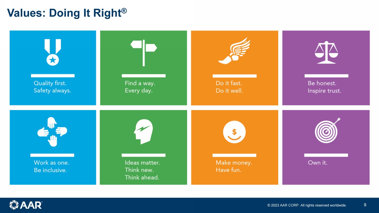 © 2023 AAR CORP. All rights reserved worldwide. 9 Values: Doing It Right ®