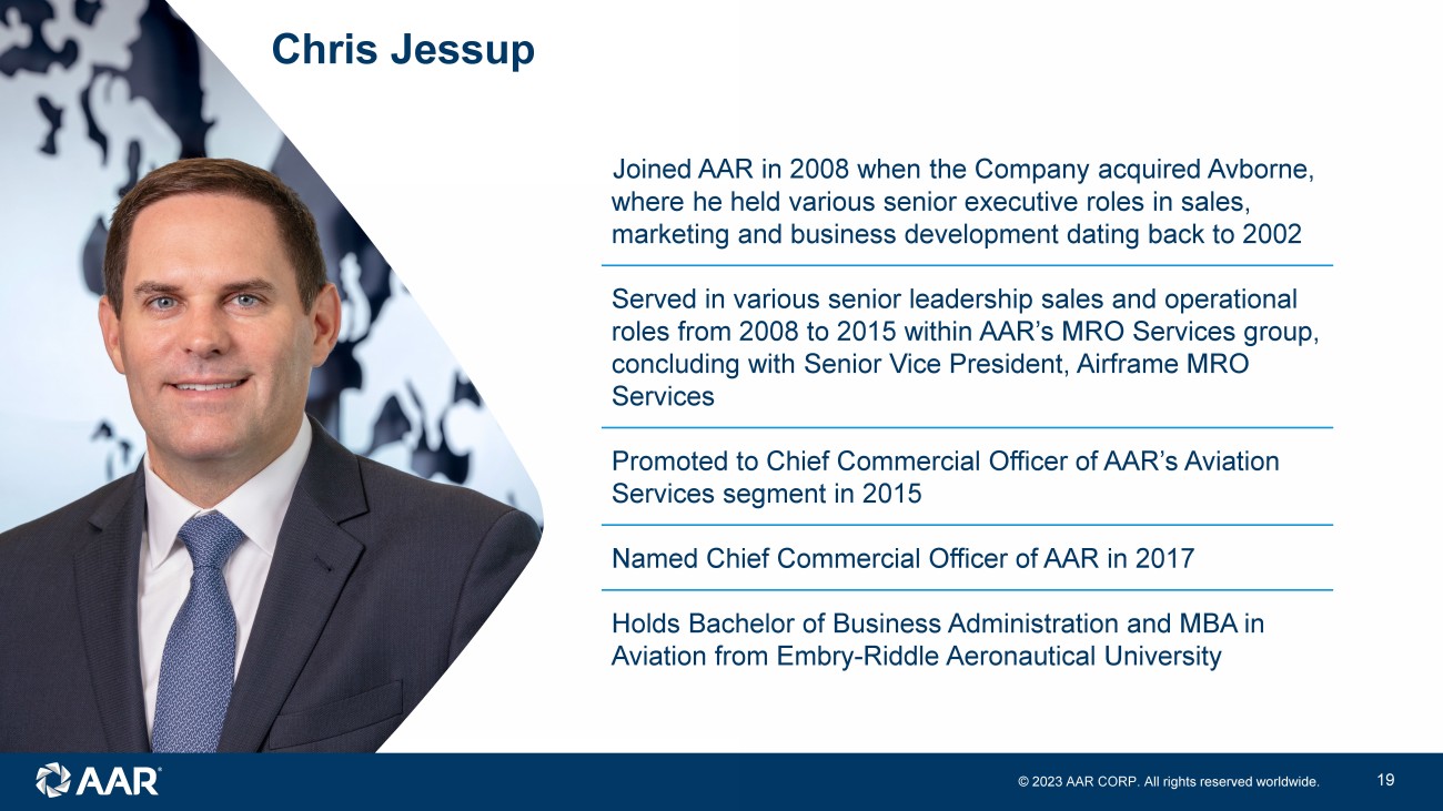 © 2023 AAR CORP. All rights reserved worldwide. 18 Market overview and positioning Chris Jessup Chief Commercial Officer