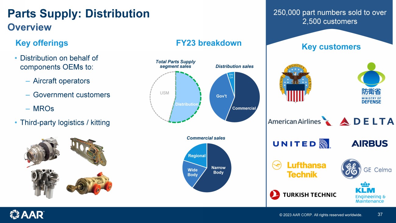 © 2023 AAR CORP. All rights reserved worldwide. 36 Frank Landrio Over 20 years of aviation experience Joined AAR in 2007 as VP of Finance: AAR Aircraft Component Services Promoted in 2009 to General Manager: AAR Aircraft Component Services Promoted in 2010 to Group CFO: Aviation Supply Chain Group Promoted in 2012 to SVP of Strategy and OEM Development CEO of ASAS (Joint venture with Sumitomo) Sr. Vice President Distribution: Interim basis since March 2023 Holds a BBA degree in Accounting and is a Certified Management Accountant (CMA)