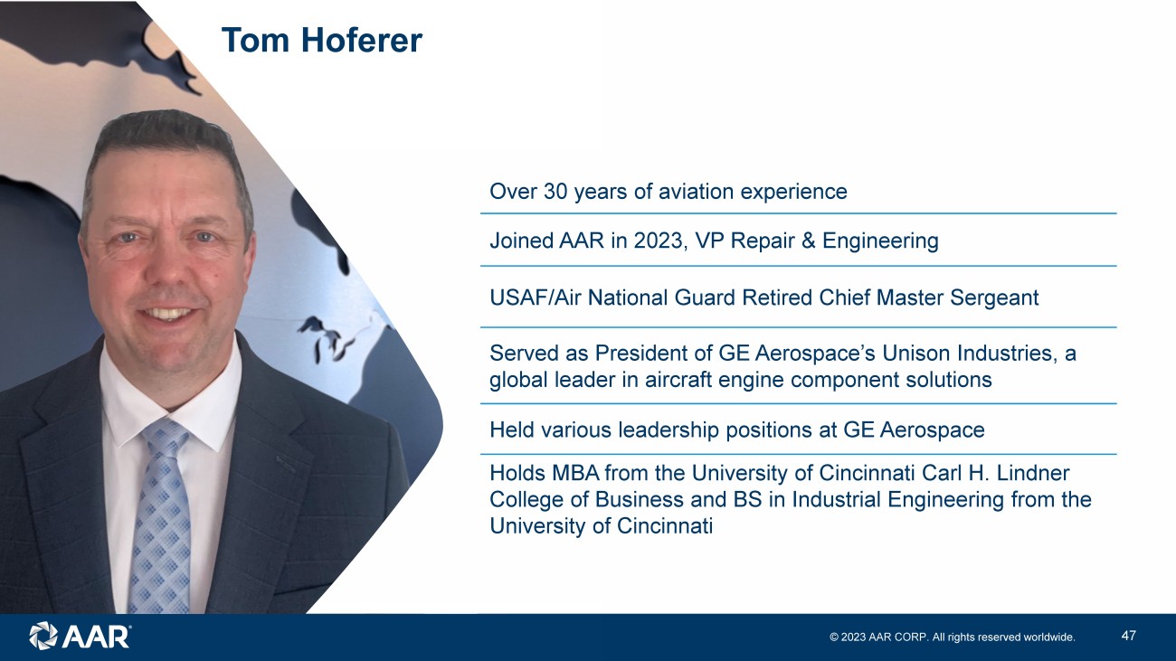 © 2023 AAR CORP. All rights reserved worldwide. 1 Tom Hoferer Senior Vice President, Repair & Engineering Repair & Engineering