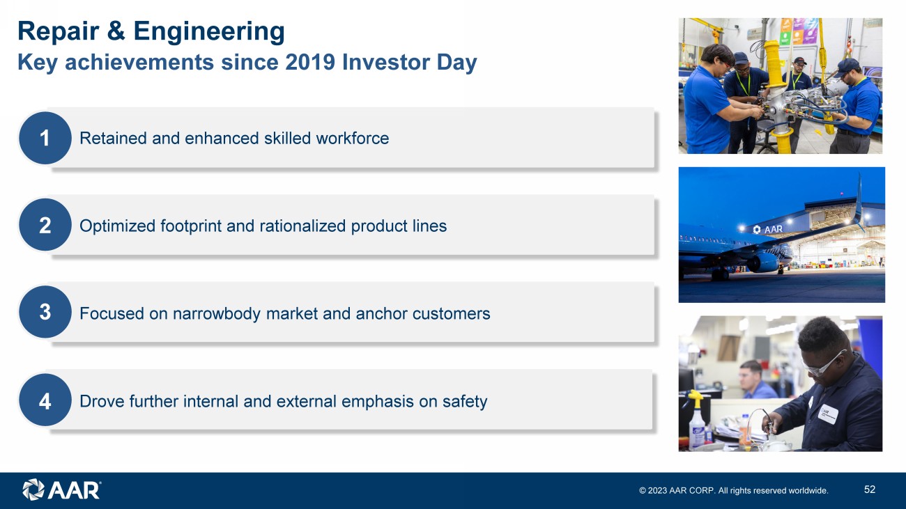 © 2023 AAR CORP. All rights reserved worldwide. 7 1 2 3 4 Retained and enhanced skilled workforce Optimized footprint and rationalized product lines Drove further internal and external emphasis on safety Focused on narrowbody market and anchor customers Key achievements since 2019 Investor Day Repair & Engineering
