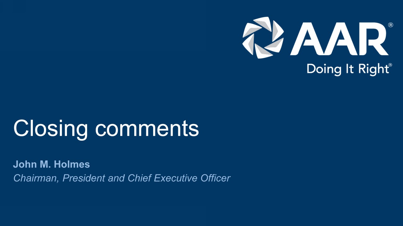 © 2023 AAR CORP. All rights reserved worldwide. 38 Closing comments John M. Holmes Chairman, President and Chief Executive Officer