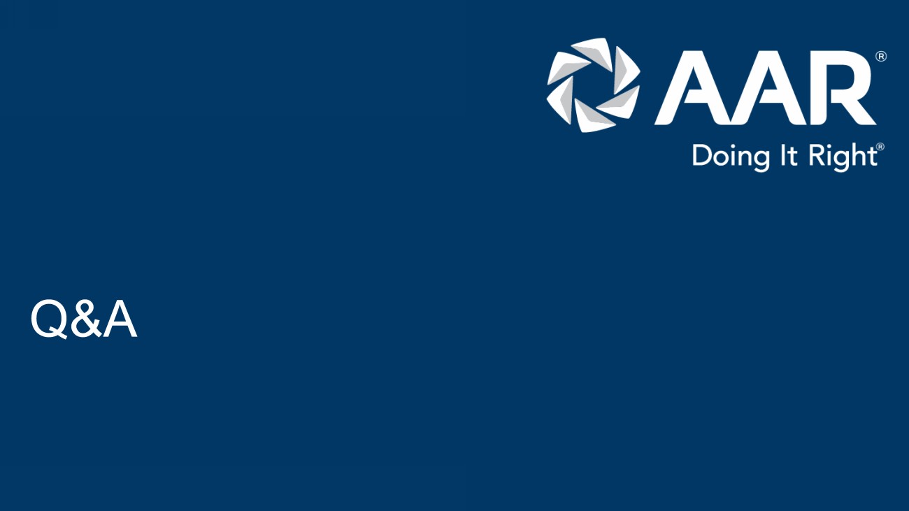 © 2023 AAR CORP. All rights reserved worldwide. 17 What’s next… • Our large and growing markets • Used Serviceable Material leadership • Distribution model that is resonating with OEMs • Significantly more efficient Repair & Engineering business • Integration Solutions offerings that bring the best of AAR together • Power of the AAR - Trax combination • Our financial performance improvement • Q&A