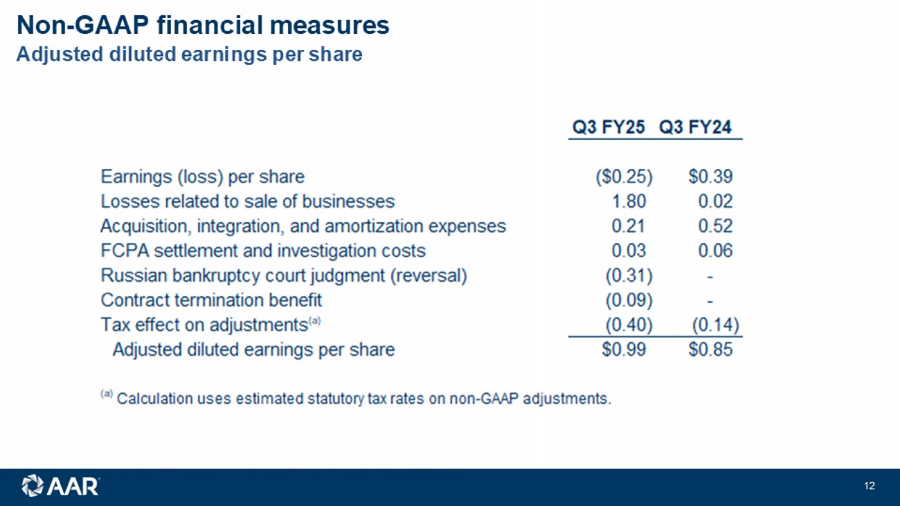 Non - GAAP financial measures Adjusted diluted earnings per share 1 2 © 2024 AAR CORP. All rights reserved worldwide.