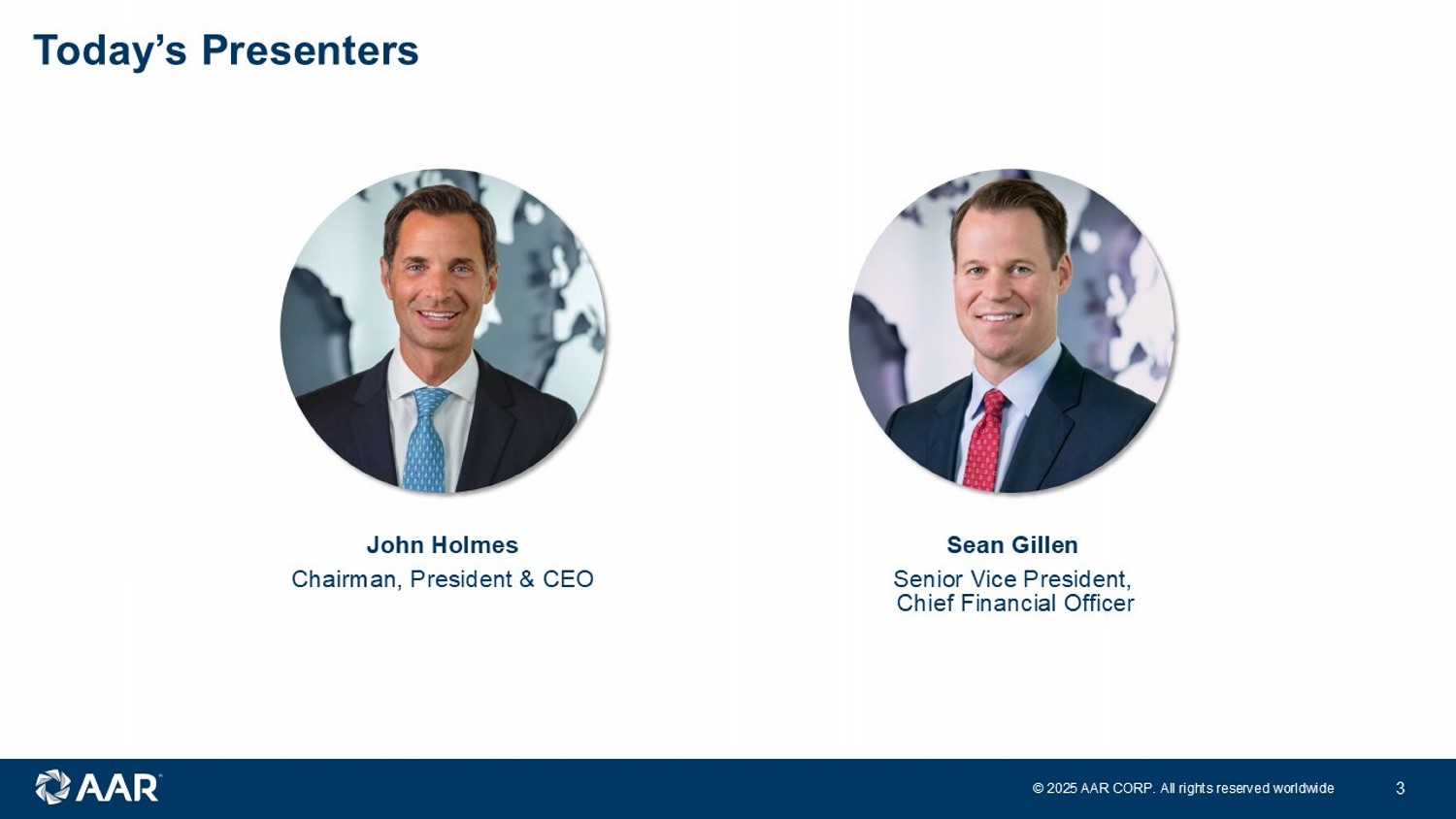© 2025 AAR CORP. All rights reserved worldwide 3 Today’s Presenters John Holmes Chairman, President & CEO Sean Gillen Senior Vice President, Chief Financial Officer