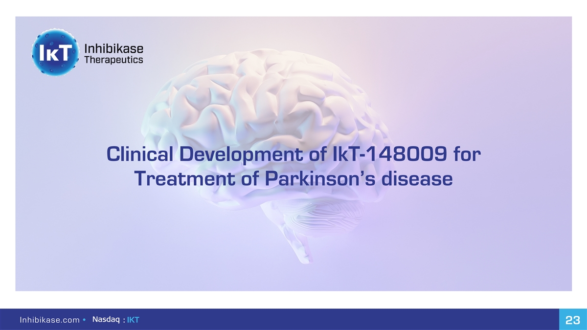 Clinical Development of IkT-148009 for Treatment of Parkinson’s disease Inhibikase.com • : IKT 23
