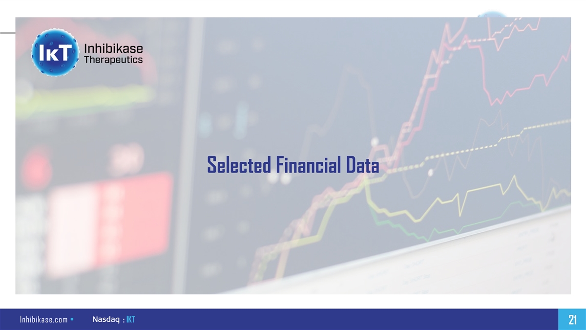 DISCLAIMER This presentation shall not constitute an offer to sell or a solicitation of an offer to buy any securities, nor shall there be any sale of such securities in any state or jurisdiction in which such offer, solicitation, or sale would be unlawful prior to registration or qualification under the securities laws of any such state or jurisdiction. This presentation contains information that may constitute “forward-looking statements” within the meaning of Section 27A of the Securities Act, and Section 21E of the Securities Exchange Act of 1934, as amended. Inhibikase Therapeutics, Inc. (the “Company” or “we”) intends for the forward-looking statements to be covered by the safe harbor provisions for forward-looking statements in those sections. Generally, we have identified such forward-looking statements by using the words “believe,” “expect,” “intend,” “estimate,” “anticipate,” “project,” “target,” “forecast,” “aim,” should, “will,” may”, “continue” and similar expressions. Such statements are subject to a number of assumptions, risks and uncertainties which may cause actual results, performance or achievements to be materially different from those anticipated in these forward-looking statements. You should read statements that contain these words carefully because they discuss future expectations and plans which contain projections of future clinical studies, regulatory approvals, product candidate development, results of operations or financial condition or state other forward-looking information. However, the absence of these words or similar expressions does not mean that a statement is not forward-looking. Forward-looking statements are not historical facts, but instead represent only the Company’s beliefs regarding future events, many of which, by their nature, are inherently uncertain and outside of the Company’s control. It is possible that the Company’s actual results and financial condition may differ, possibly materially, from the anticipated results and financial condition indicated in these forward-looking statements. Management believes that these forward-looking statements are reasonable as of the time made. However, caution should be taken not to place undue reliance on any such forward-looking statements because such statements speak only as of the date when made. The Company undertakes no obligation to publicly update or revise any forward-looking statements, whether as a result of new information, future events or otherwise, except as required by law. In addition, forward-looking statements are subject to certain risks and uncertainties that could cause actual results to differ materially from the Company's historical experience and our present expectations or projections. Important factors that could cause actual results to differ materially from those in the forward-looking statements are set forth in the Company’s filings with the Securities and Exchange Commission, including its annual report on Form 10-K and its quarterly Form 10-Q, including under the caption Risk Factors”. We do not intend our use or display of other entities’ names, trade names, trademarks or service marks to imply a relationship with, or endorsement or sponsorship of us by, any other entity. Inhibikase.com • : IKT 2