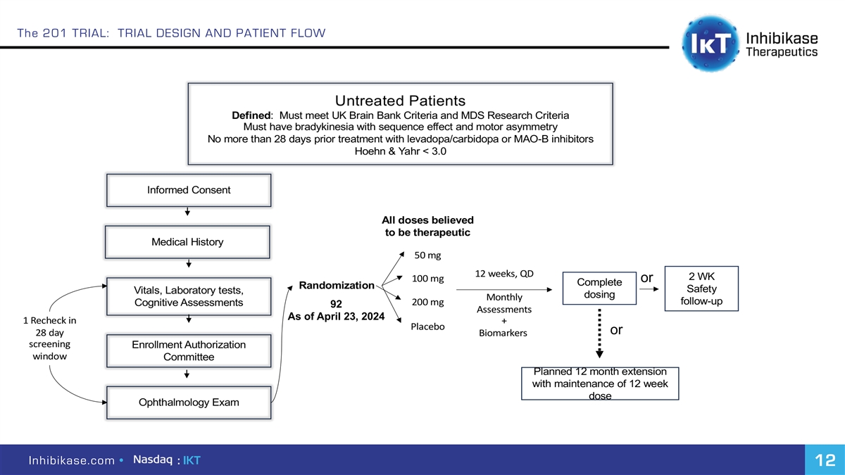 The 201 TRIAL: TRIAL DESIGN AND PATIENT FLOW or 92 As of April 23, 2024 or Inhibikase.com • : IKT 12