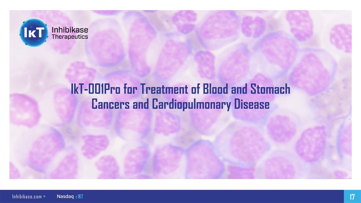 IkT-001Pro for Treatment of Blood and Stomach Cancers and Cardiopulmonary Disease Inhibikase.com • : IKT 17