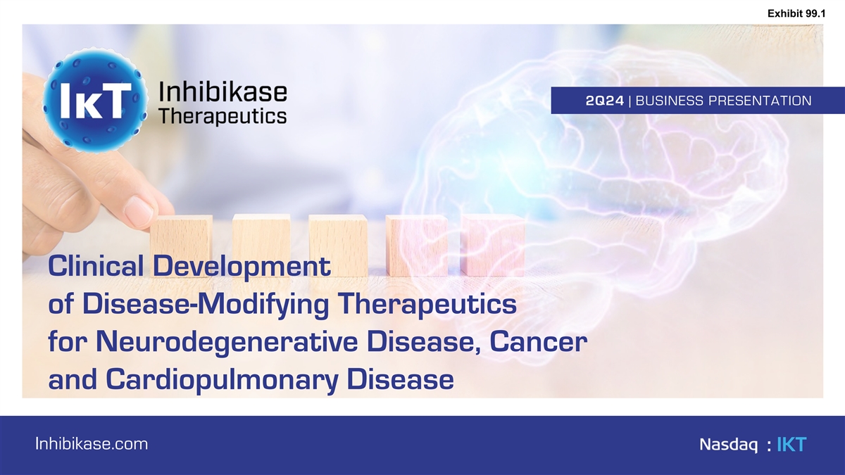 Exhibit 99.1 2Q24 | BUSINESS PRESENTATION Clinical Development of Disease-Modifying Therapeutics for Neurodegenerative Disease, Cancer and Cardiopulmonary Disease Inhibikase.com : IKT
