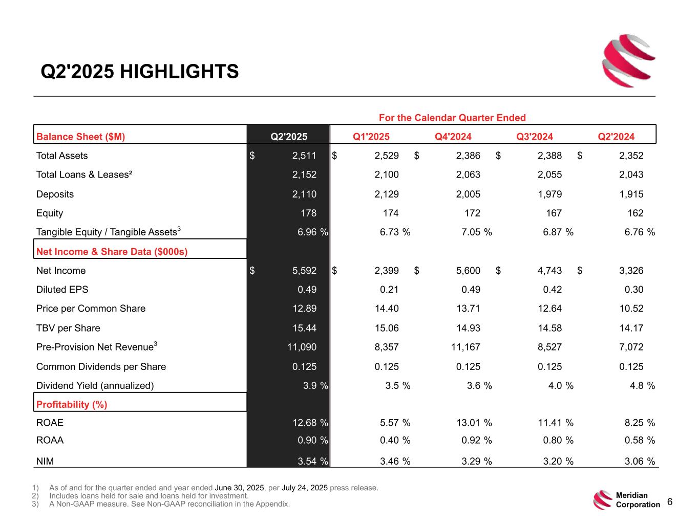 Second Quarter 2025 NASDAQ: MRBK Earnings Supplement