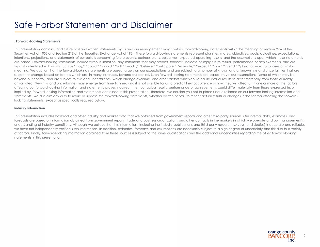 Safe Harbor Statement and Disclaimer . Forward - Looking Statements This presentation contains, and future oral and written statements by us and our management may contain, forward - looking stateme nts within the meaning of Section 27A of the Securities Act of 1933 and Section 21E of the Securities Exchange Act of 1934. These forward - looking statements represent plans, estimates, objectives, goals, guidelines, expectations, intentions, projections, and statements of our beliefs concerning future events, business plans, objectives, expected operati ng results, and the assumptions upon which those statements are based. Forward - looking statements include without limitation, any statement that may predict, forecast, indicate or imply fu ture results, performance or achievements, and are typically identified with words such as “may,” “could,” “should,” “will,” “would,” “believe,” “anticipate,” “estimate,” “expe ct, ” “aim,” “intend,” “plan,” or words or phases of similar meaning. We caution that the forward - looking statements are based largely on our expectations and are subject to a number of kno wn and unknown risks and uncertainties that are subject to change based on factors which are, in many instances, beyond our control. Such forward - looking statements are based o n various assumptions (some of which may be beyond our control) and are subject to risks and uncertainties, which change overtime, and other factors which could cause ac tua l results to differ materially from those currently anticipated. New risks and uncertainties may emerge from time to time, and it is not possible for us to predict their occurre nce or how they will affect us. If one or more of the factors affecting our forward - looking information and statements proves incorrect, then our actual results, performance or achievements could differ materially from those expressed in, or implied by, forward - looking information and statements contained in this presentation. Therefore, we caution you not to place un due reliance on our forward - looking information and statements. We disclaim any duty to revise or update the forward - looking statements, whether written or oral, to reflect actual results or changes in the factors affecting the forward - looking statements, except as specifically required bylaw. Industry Information This presentation includes statistical and other industry and market data that we obtained from government reports and other thi rd - party sources. Our internal data, estimates, and forecasts are based on information obtained from government reports, trade and business organizations and other contacts in t he markets in which we operate and our management’s understanding of industry conditions. Although we believe that this information (including the industry publications and thir d p arty research, surveys, and studies) is accurate and reliable, we have not independently verified such information. In addition, estimates, forecasts and assumptions are necessarily subjec t t o a high degree of uncertainty and risk due to a variety of factors. Finally, forward - looking information obtained from these sources is subject to the same qualifications and the addit ional uncertainties regarding the other forward - looking statements in this presentation. 2