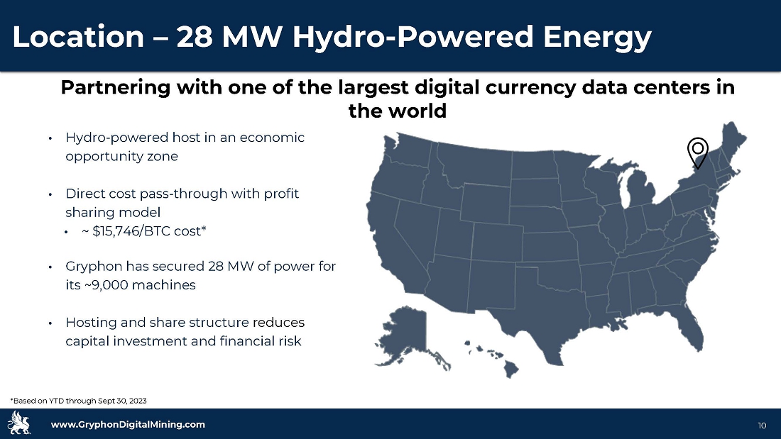 www.GryphonDigitalMining.com Target Capitalization 9 Company Overview – Snapshot 1.3 Exahash of Carbon - Neutral Bitcoin Mining Power Carbon - Neutral Miner pursuing a negative carbon strategy Attributable 0.34 Exahash of hashing power from Royalty Partner pending 0.91 Exahash from self mining