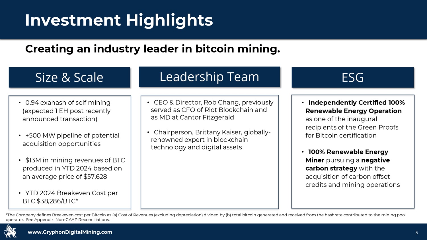 www.GryphonDigitalMining.com To create a financially nimble, highly profitable, and environmentally responsible bitcoin miner Mission Statement 4