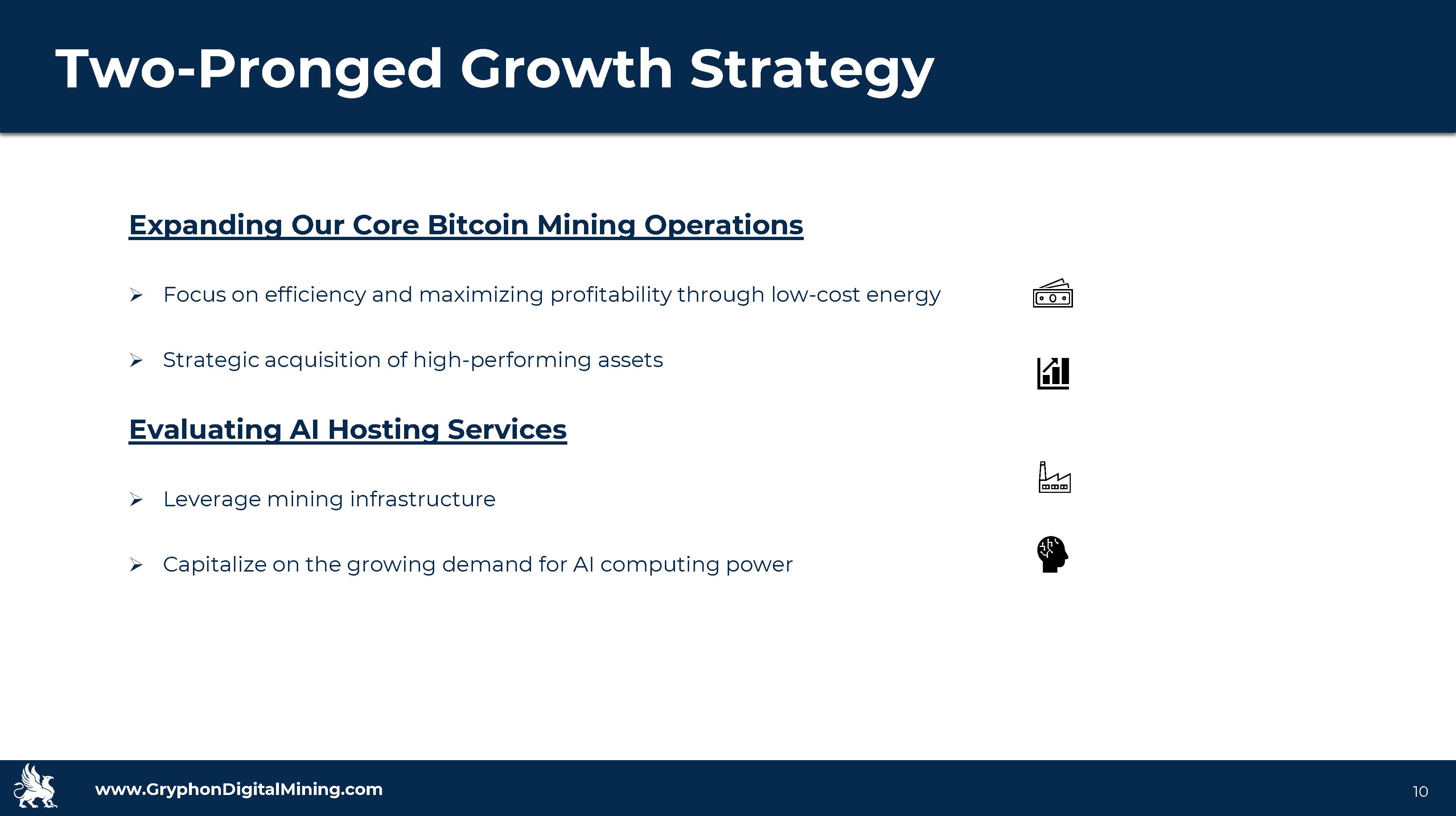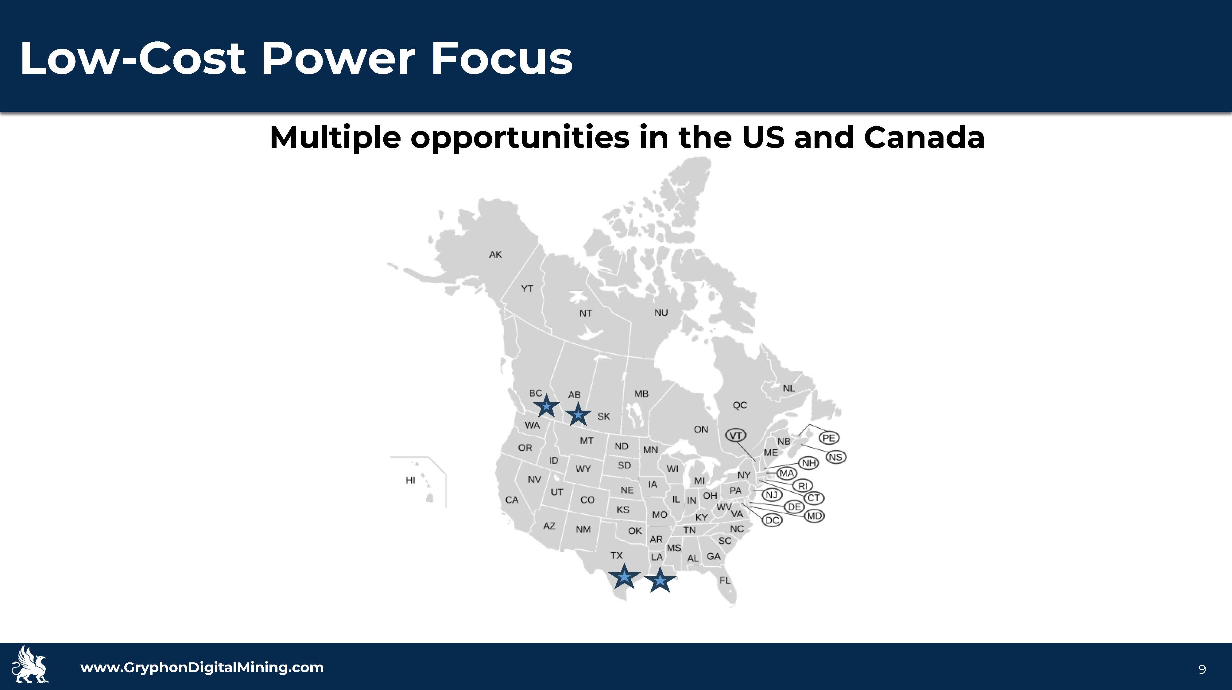 www.GryphonDigitalMining.com Target Capitalization 9 Multiple opportunities in the US and Canada Low-Cost Power Focus