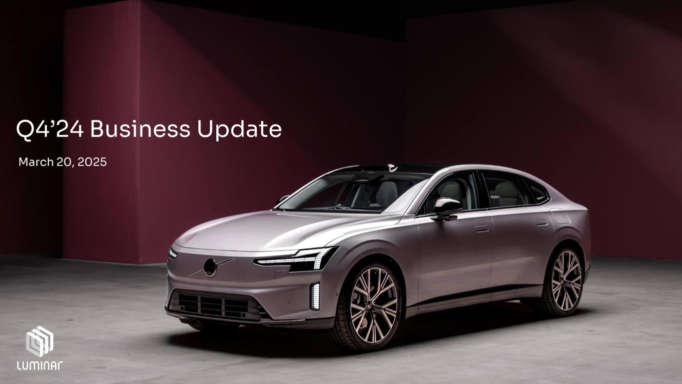 Forward-looking statements This presentation of Luminar Technologies, Inc. (“Luminar” or the “company”) includes “forward-looking statements” within the meaning of the “safe harbor” provisions of the U.S. Private securities litigation reform act of 1995. Forward-looking statements may be identified by the use of words such as “future,” “growth,” “opportunity,” "will," “well-positioned,” "forecast," "intend," "seek," "target," “anticipate,” “believe,” “expect,” “estimate,” “plan,” “outlook,” and “project” and other similar expressions that predict or indicate future events or trends or that are not statements of historical matters. These forward-looking statements include, but are not limited to, statements regarding whether next generation sensors and software will be developed successfully or will accelerate automaker adoption, whether new automaker agreements will develop successfully into product launches, whether cost reduction efforts will continue to result in improved operational and financial efficiency, including projected free cash flow generation, expected achievement and timing of manufacturing scale up, OEM production readiness, next-gen LiDAR prototype development, continued software and AI development and performance, program milestones, expected milestones, market size estimates, product efficacy, near-term priorities, including plans to ramp production and ramp down costs, operating expenses and cost of sales, and the financial guidance for fiscal 2025. These statements are based on various assumptions, whether or not identified in this presentation, and on the current expectations of Luminar’s management and are not guarantees of actual performance. You are cautioned not to place undue reliance upon any forward-looking statements, including the projections, which speak only as of the date made. Luminar does not undertake any commitment to update or revise the forward-looking statements, whether as a result of new information, future events or otherwise. Accordingly, forward-looking statements, including any projections or analysis, should not be viewed as factual and should not be relied upon as an accurate prediction of future results. The forward-looking statements contained in this presentation are based on the company’s current expectations and beliefs concerning future developments and their potential effects on Luminar. These forward-looking statements involve a number of risks, uncertainties (some of which are beyond our control), or other assumptions that may cause actual results or performance to be materially different from those expressed or implied by these forward-looking statements. Forward-looking statements are subject to a number of risks and uncertainties that could cause actual results to differ materially from the forward-looking statements, including the risks discussed in the “Risk Factors,” and “Management’s Discussion and Analysis of Financial Condition and Results of Operations” sections of Luminar’s most recently filed periodic reports on Form 10-K and Form 10-Q, and other documents Luminar files with the SEC in the future, including Luminar's Annual Report on Form 10-K for the year ended December 31, 2024. Should one or more of these risks or uncertainties materialize, or should any of management’s assumptions prove incorrect, actual results may vary in material respects from those projected in these forward-looking statements. Luminar does not undertake any obligation to update or revise any forward-looking statements, whether as a result of new information, future events or otherwise, except as may be required under applicable securities laws. Accordingly, you should not put undue reliance on these statements. Trademarks and trade names Luminar owns or has rights to various trademarks, service marks and trade names that it uses in connection with the operation of its business. This presentation also contains trademarks, service marks and trade names of third parties, which are the property of their respective owners. The use or display of third parties’ trademarks, service marks, trade names or products in this presentation is not intended in, and does not imply, a relationship with Luminar, or an endorsement or sponsorship by or of Luminar. Solely for convenience, the trademarks, service marks and trade names referred to in this presentation may appear without the ®, TM or SM symbols, but such references are not intended to indicate, in any way, that Luminar will not assert, to the fullest extent under applicable law, its rights or the right of the applicable licensor in these trademarks, service marks and trade names. Industry and market data In this presentation, Luminar relies on and refers to information and statistics regarding the sectors in which Luminar competes and other industry data. Luminar obtained this information and statistics from third-party sources, including reports by market research firms. Although Luminar believes these sources are reliable, the company has not independently verified the information and does not guarantee its accuracy and completeness. Luminar has supplemented this information where necessary with information from discussions with Luminar customers and Luminar’s own internal estimates, taking into account publicly available information about other industry participants and Luminar’s management’s best view as to information that is not publicly available. Disclaimer & Cautionary Note © 2025 Luminar Technologies, Inc. All rights reserved. | 3