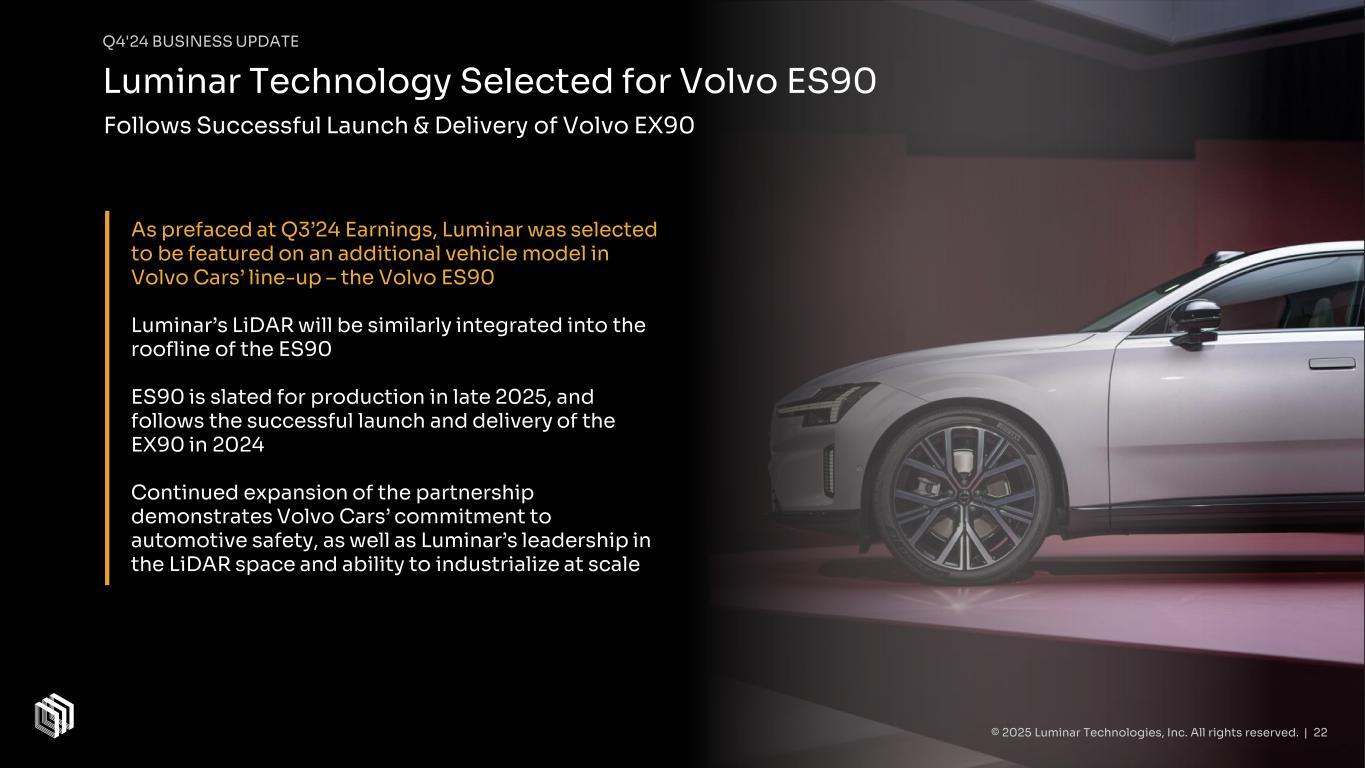 Q4’24 Business Update © 2025 Luminar Technologies, Inc. All rights reserved. | 21