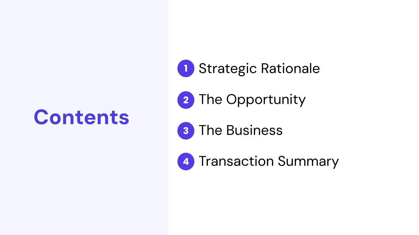 • Strategic Rationale • The Opportunity • The Business • Transaction Summary Contents 1 2 3 4