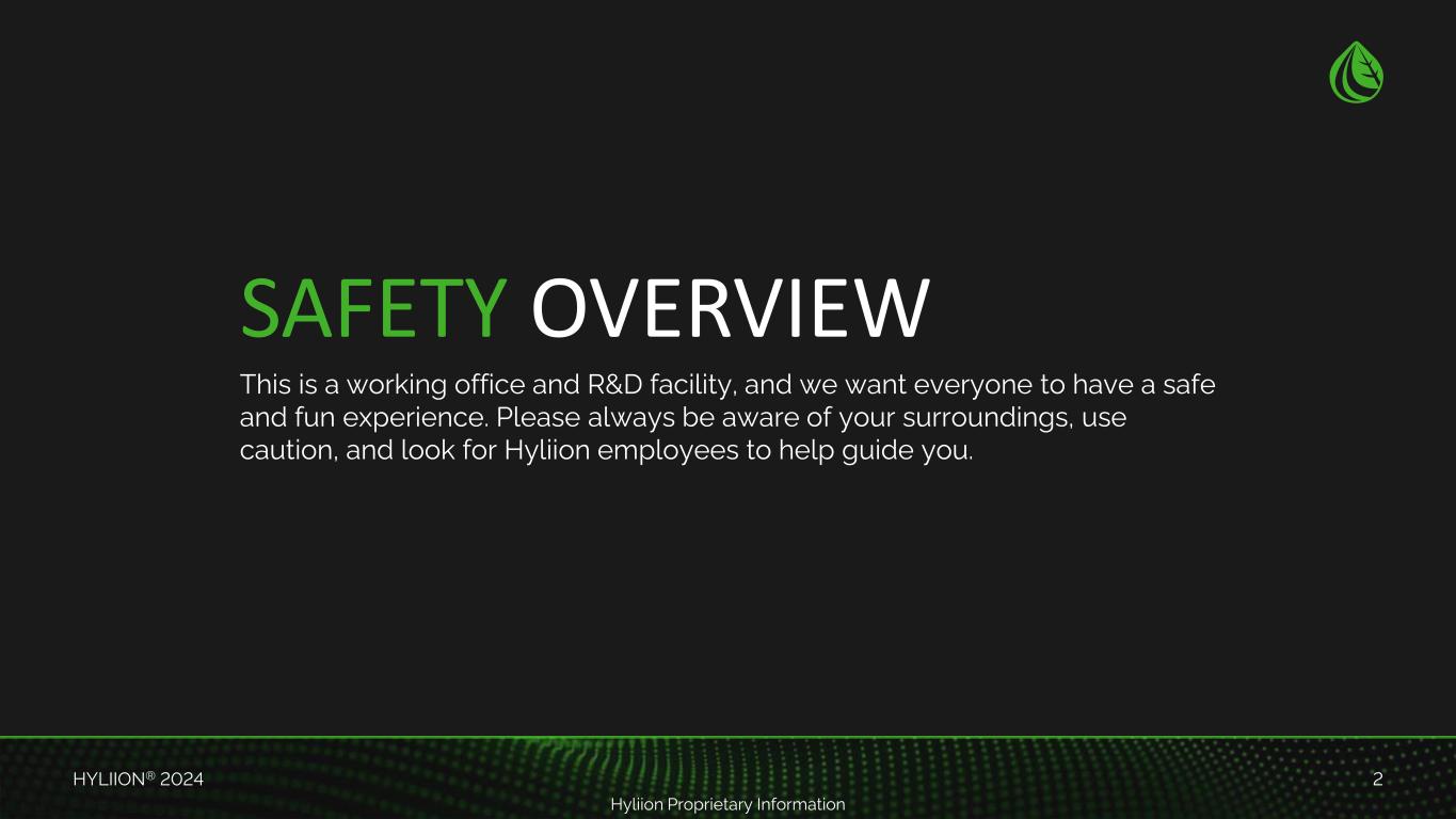 HYLIION® 2024 2 This is a working office and R&D facility, and we want everyone to have a safe and fun experience. Please always be aware of your surroundings, use caution, and look for Hyliion employees to help guide you. SAFETY OVERVIEW Hyliion Proprietary Information