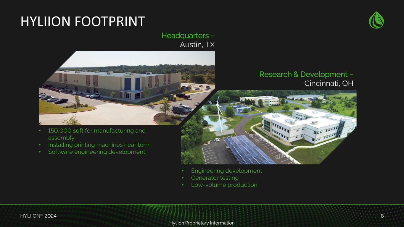 HYLIION FOOTPRINT 8 Headquarters – Austin, TX • 150,000 sqft for manufacturing and assembly • Installing printing machines near term • Software engineering development • Engineering development • Generator testing • Low-volume production Research & Development – Cincinnati, OH HYLIION® 2024 Hyliion Proprietary Information