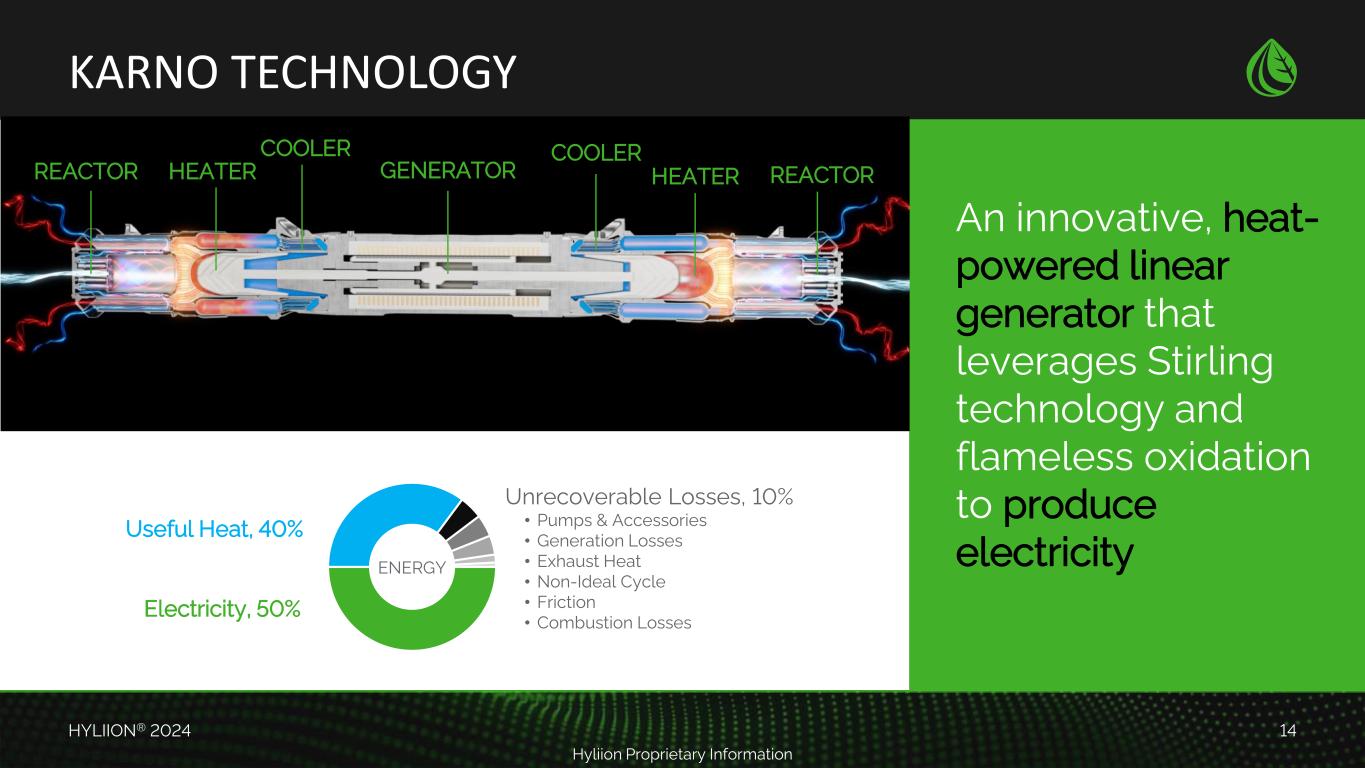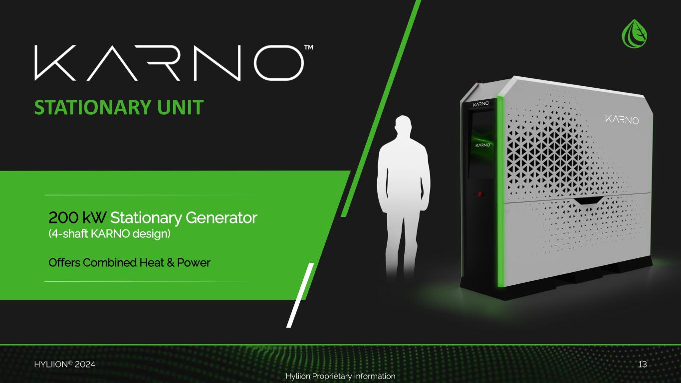 STATIONARY UNIT HYLIION® 2024 200 kW Stationary Generator (4-shaft KARNO design) Offers Combined Heat & Power 13 Hyliion Proprietary Information