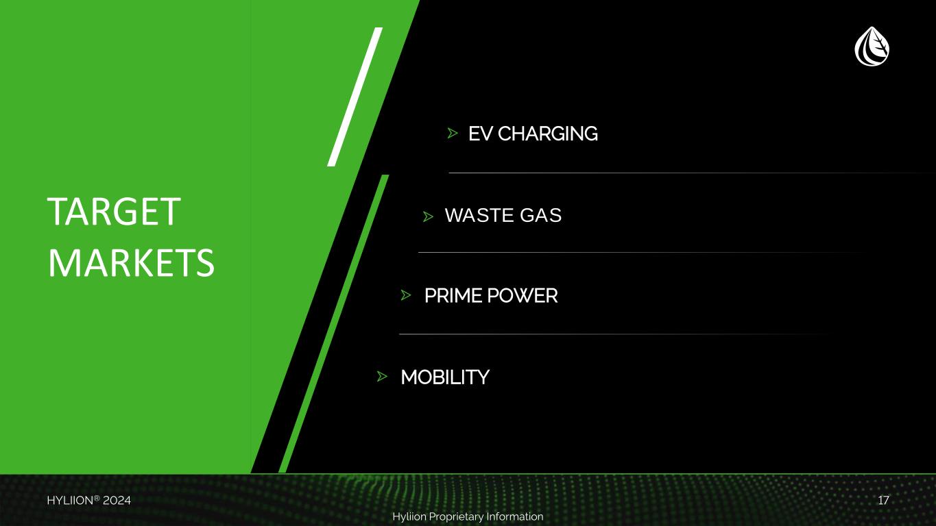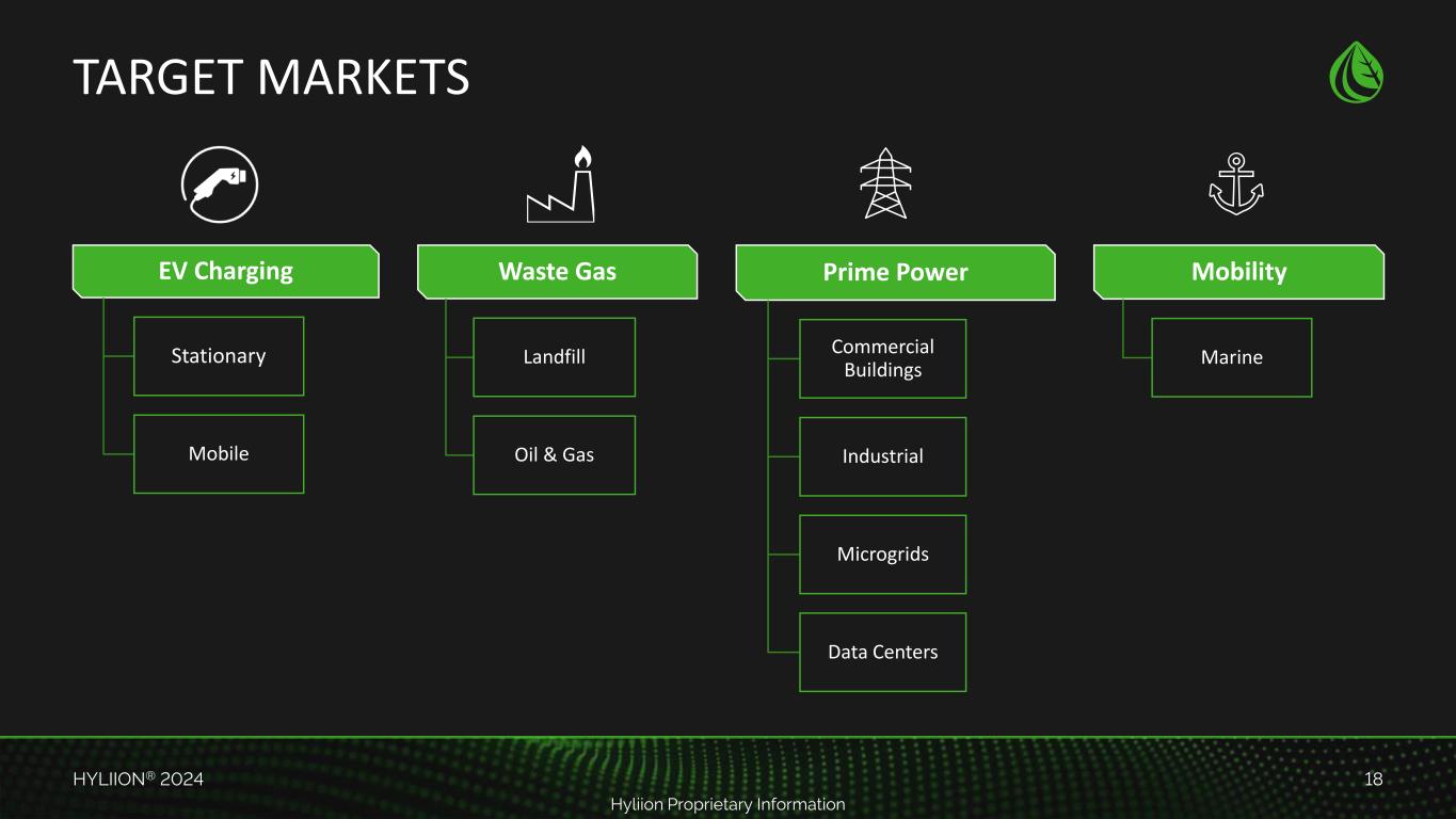 17 TARGET MARKETS EV CHARGING WASTE GAS PRIME POWER MOBILITY HYLIION® 2024 Hyliion Proprietary Information