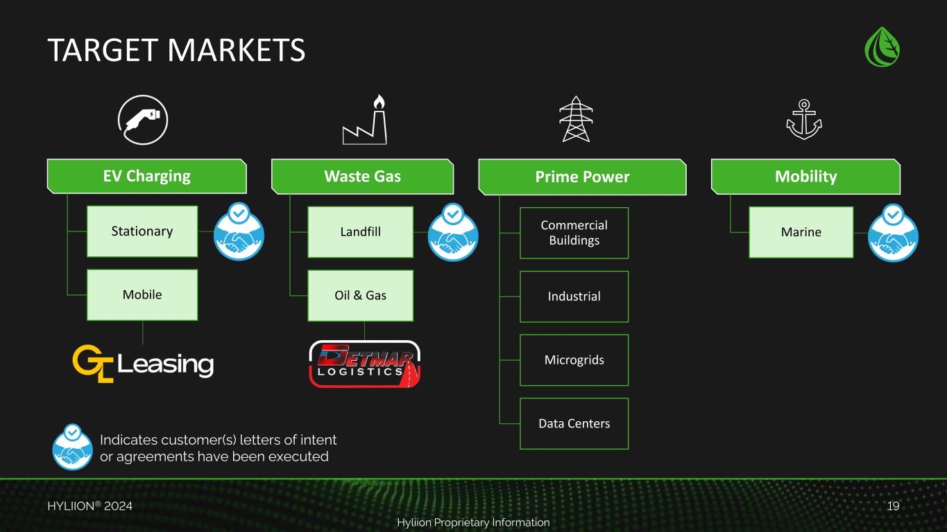TARGET MARKETS EV Charging Stationary Mobile Waste Gas Landfill Oil & Gas Prime Power Commercial Buildings Industrial Microgrids Data Centers Mobility Marine 18HYLIION® 2024 Hyliion Proprietary Information