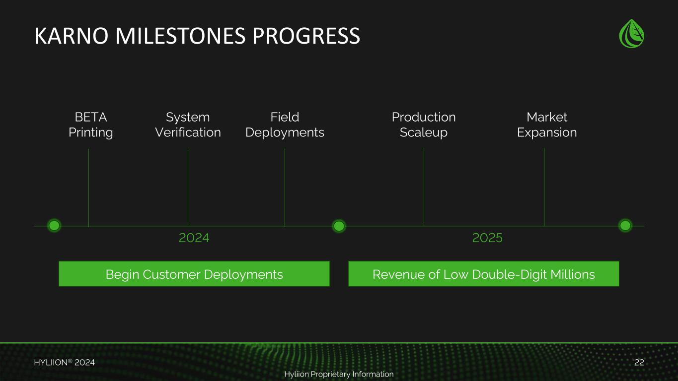 KARNO MILESTONES PROGRESS 22 2024 2025 Begin Customer Deployments Revenue of Low Double-Digit Millions System Verification BETA Printing Field Deployments Production Scaleup Market Expansion HYLIION® 2024 Hyliion Proprietary Information