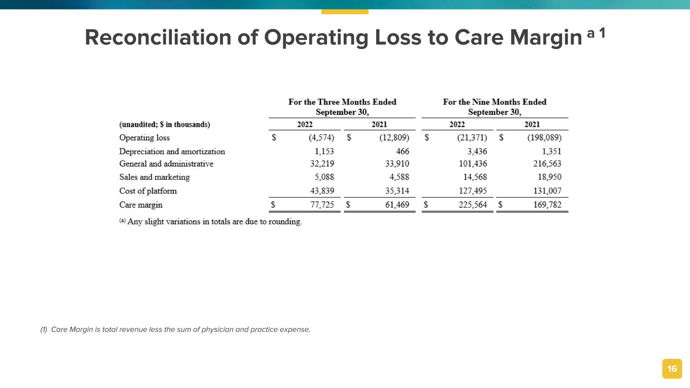 16 Reconciliation of Operating Loss to Care Margin a 1 (1) Care Margin is total revenue less the sum of physician and practice expense.