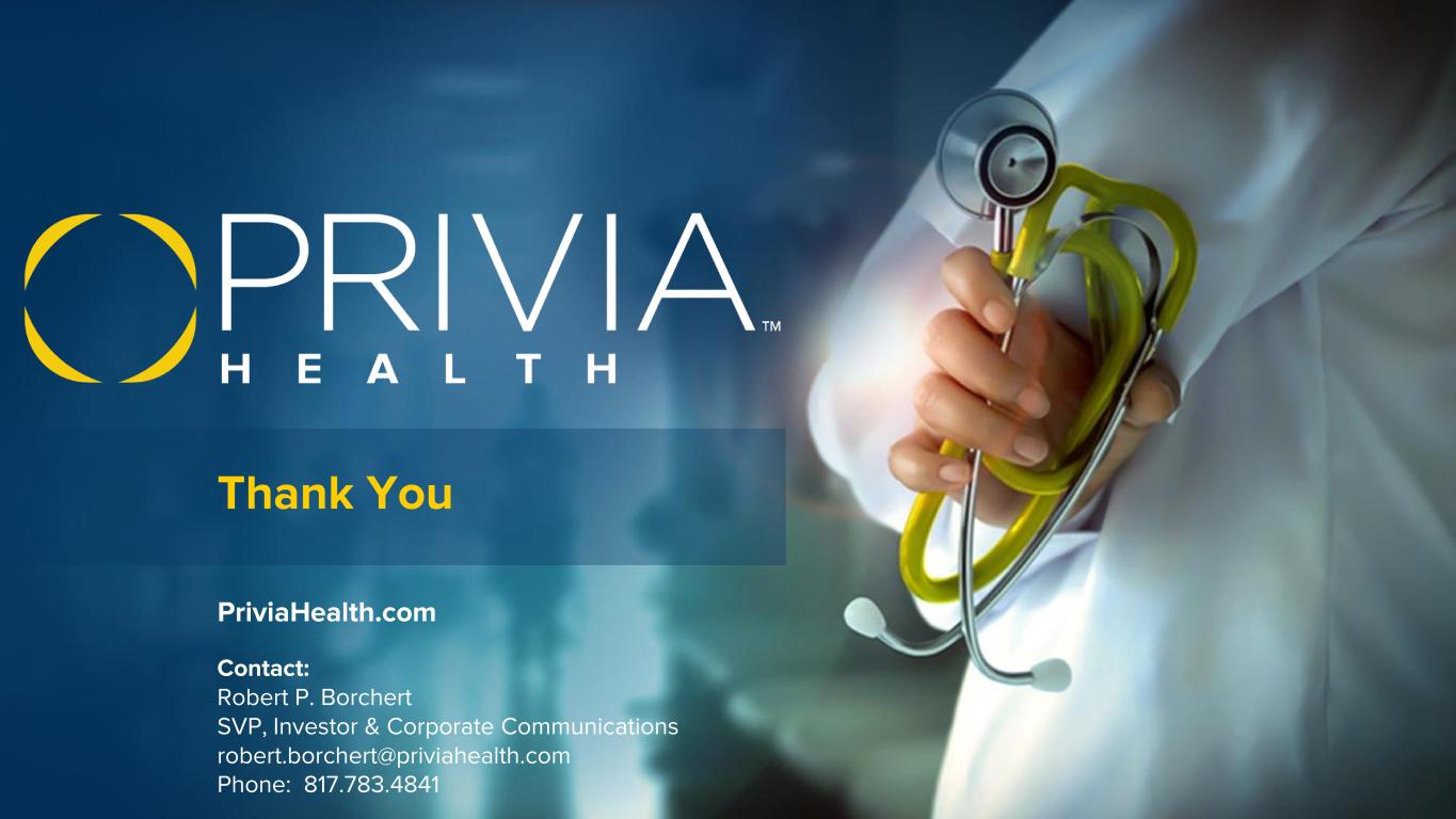 20 Thank You PriviaHealth.com Contact: Robert P. Borchert SVP, Investor & Corporate Communications robert.borchert@priviahealth.com Phone: 817.783.4841