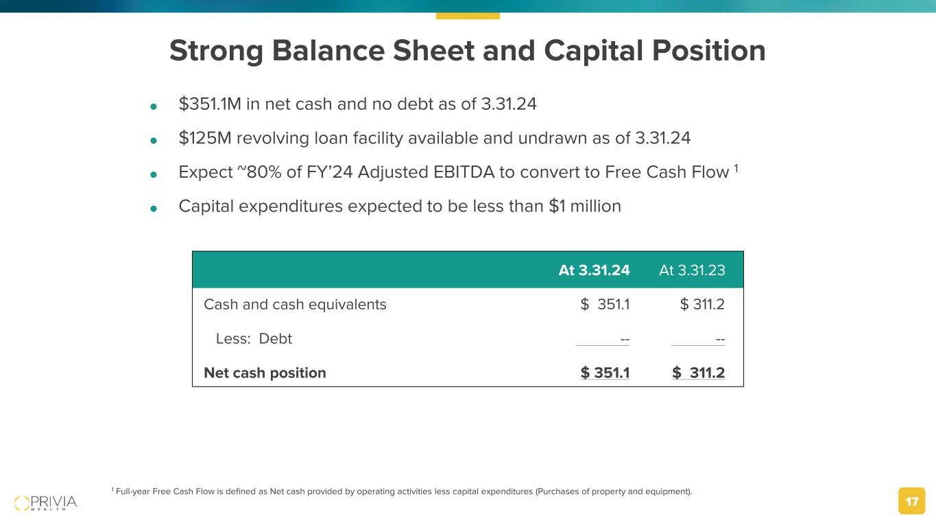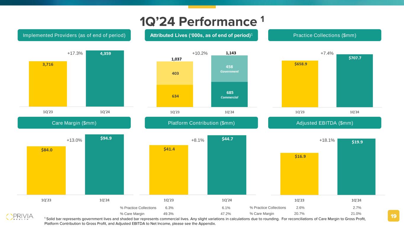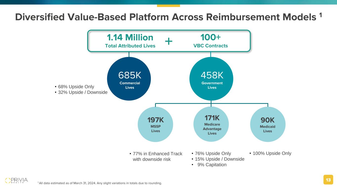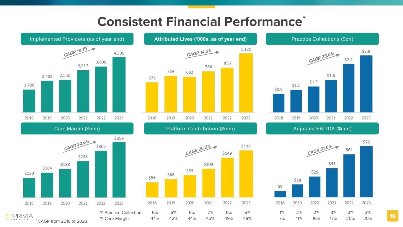 2 Forward-Looking Statements This presentation contains forward-looking statements that express the Company’s opinions, expectations, beliefs, plans, objectives, assumptions or projections regarding future events or future results that include, but are not limited to: 2024 financial guidance and other projections and forecasts. These forward-looking statements involve a number of risks, uncertainties (some of which are beyond the Company’s control) or other assumptions that may cause actual results or performance to be materially different from those expressed or implied by these forward-looking statements. These risks and uncertainties include, but are not limited to, those factors described in filings with the Securities and Exchange Commission (“SEC”), including those under “Risk Factors” therein. Should one or more of these risks or uncertainties materialize, or should any of the assumptions prove incorrect, actual results may vary in material respects from those projected in these forward-looking statements. Forward-looking statements speak only as of the date made. The Company does not undertake any obligation to update or revise any forward-looking statements, whether as a result of new information, future events or otherwise, except as may be required under applicable securities laws. Use of Non-GAAP Financial Information In order to provide investors with greater insight, promote transparency and allow for a more comprehensive understanding of the information used by management in its financial and operational decision-making, the Company supplements its condensed consolidated financial statements presented on a GAAP basis herein with certain non-GAAP financial information, including: Care Margin; Platform Contribution; Platform Contribution margin; Adjusted EBITDA; Adjusted EBITDA margin; Adjusted Net Income; Free Cash Flow and Net Cash Position. Reconciliations of these non-GAAP measures to their most directly comparable GAAP measures are included in the financial schedules in the Appendix of this presentation, as well as in the Company’s quarterly financial press releases and related Form 8-K filings with the SEC. This information can be accessed for free by visiting www.priviahealth.com or www.sec.gov. Management has not reconciled forward-looking non-GAAP measures to its most directly comparable GAAP measure of Gross Profit, Operating Income, Net Income, and Net cash provided by operating activities. This is because the Company cannot predict with reasonable certainty and without unreasonable efforts the ultimate outcome of certain GAAP components of such reconciliations due to market-related assumptions that are not within our control as well as certain legal or advisory costs, tax costs or other costs that may arise. For these reasons, management is unable to assess the probable significance of the unavailable information, which could materially impact the amount of the future directly comparable GAAP measures. Disclaimer