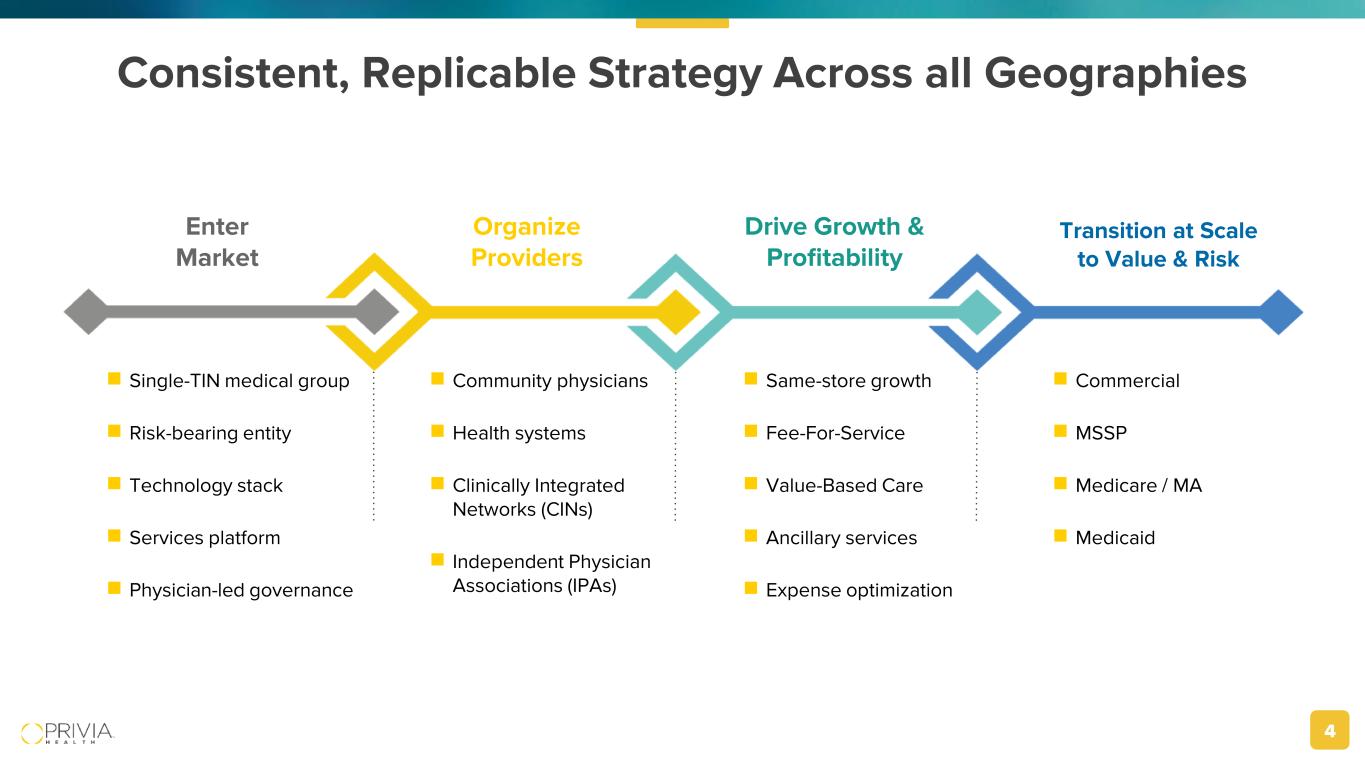 3 Privia Health: Unique Physician Alignment Model Scaled Platform All Specialties All Patients Multiple Growth Drivers Large Addressable Market Proven Unit Economics Highly Profitable Capital Efficient All Reimbursements Fee-for-Service Value-Based Care All Payers