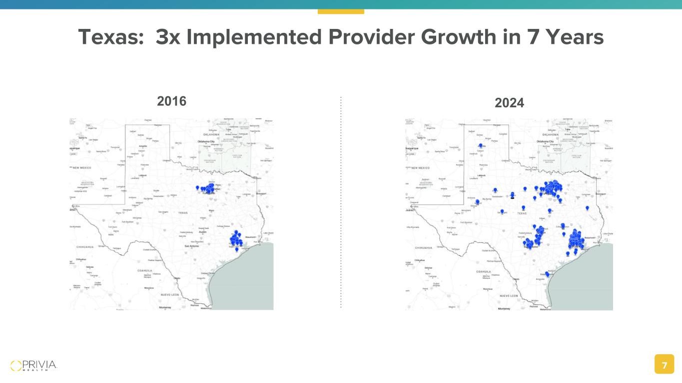 7 Texas: 3x Implemented Provider Growth in 7 Years 20242016