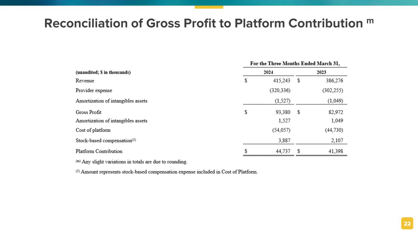 22 Reconciliation of Gross Profit to Platform Contribution m