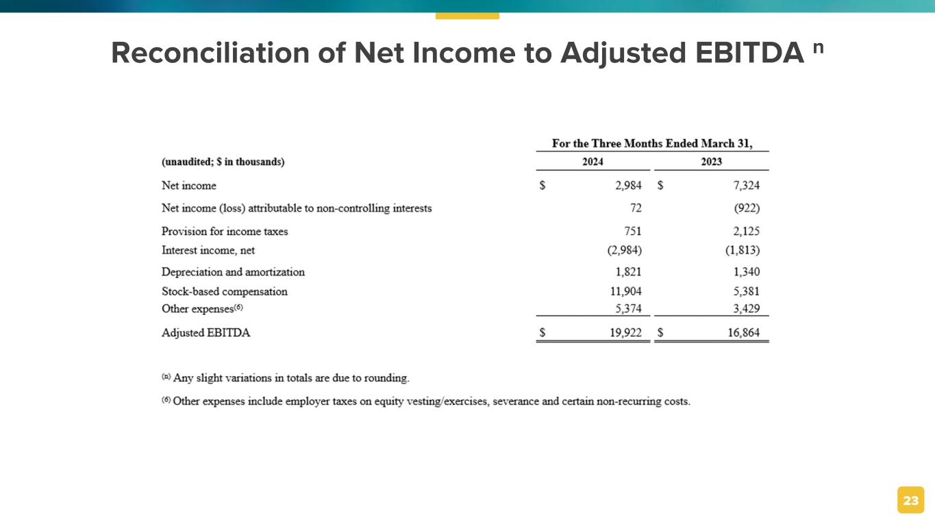 23 Reconciliation of Net Income to Adjusted EBITDA n