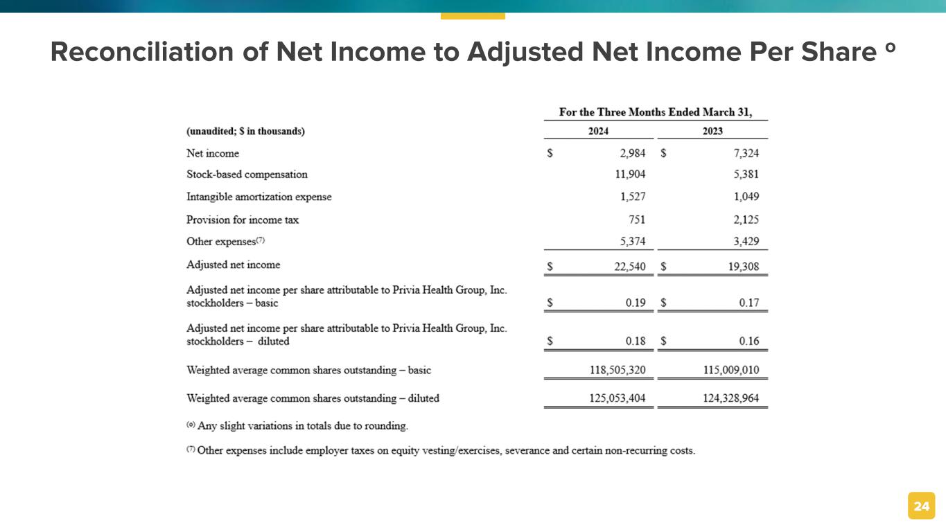 24 Reconciliation of Net Income to Adjusted Net Income Per Share o