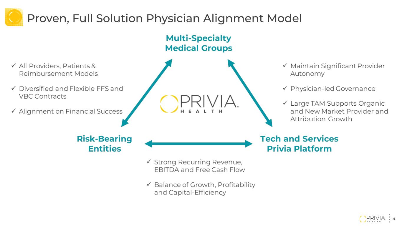 3 *Includes Privia Care Partners’ lives | **Excludes Privia Care Partners’ providers *** Average Over the Last 3 years 14 States Plus D.C. 50+ Specialties 1,170+ Care Center Locations 5.1M+ Patients 1.2M+ Attributed Lives* 4,642 Implemented Providers** 98% Gross Provider Retention*** 85 Patient NPS NATIONAL PRESENCE# Building One of the Largest Primary Care Centric Delivery Networks # Dot denotes anchor practice partnership in each geography