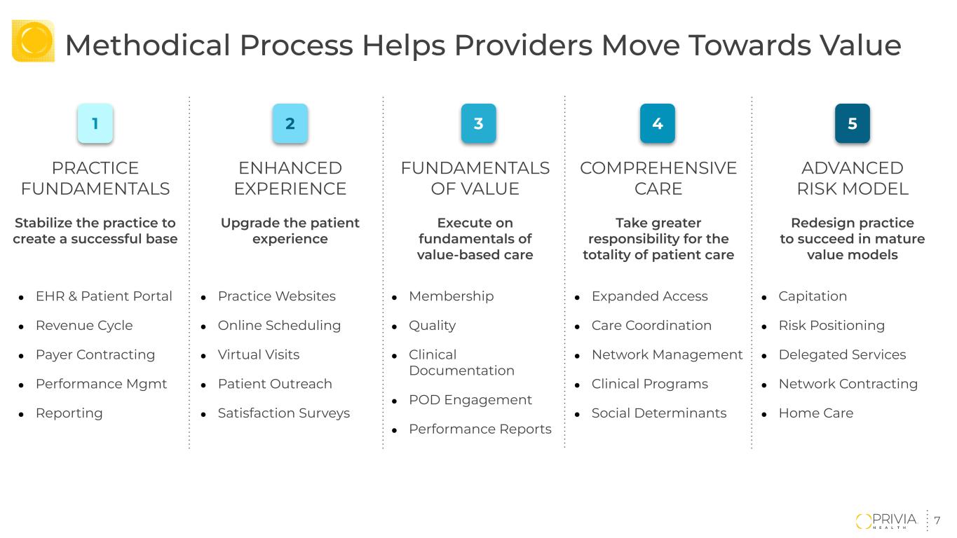 Delivering Tangible Value to Providers and Payers 6 Value to Providers Value to Payers ● Enhanced fee-for-service contracts ● Expense savings ● Collections improvement through robust revenue cycle management ● Enhanced provider productivity ● Incremental value-based care revenue ● Organic same store practice growth ● Large community-based, multi-specialty care delivery networks ● Ability to perform across the spectrum of value-based care models “at-scale” ● Flexible value-based care strategy by geography as demographics evolve over time ● Multi-year strategy to help community providers succeed while maintaining significant autonomy ● Generating significant savings across populations: Commercial, Medicare, and Medicaid