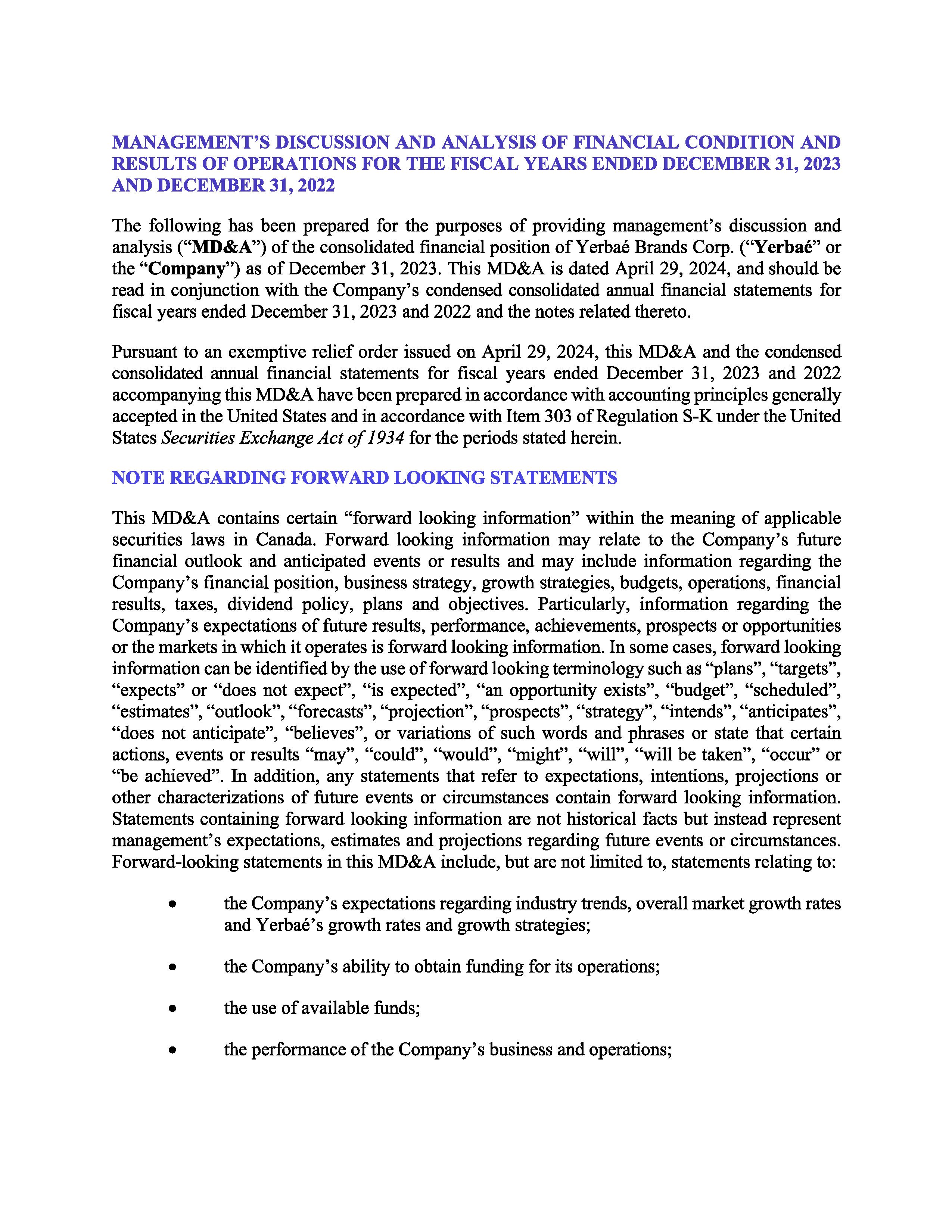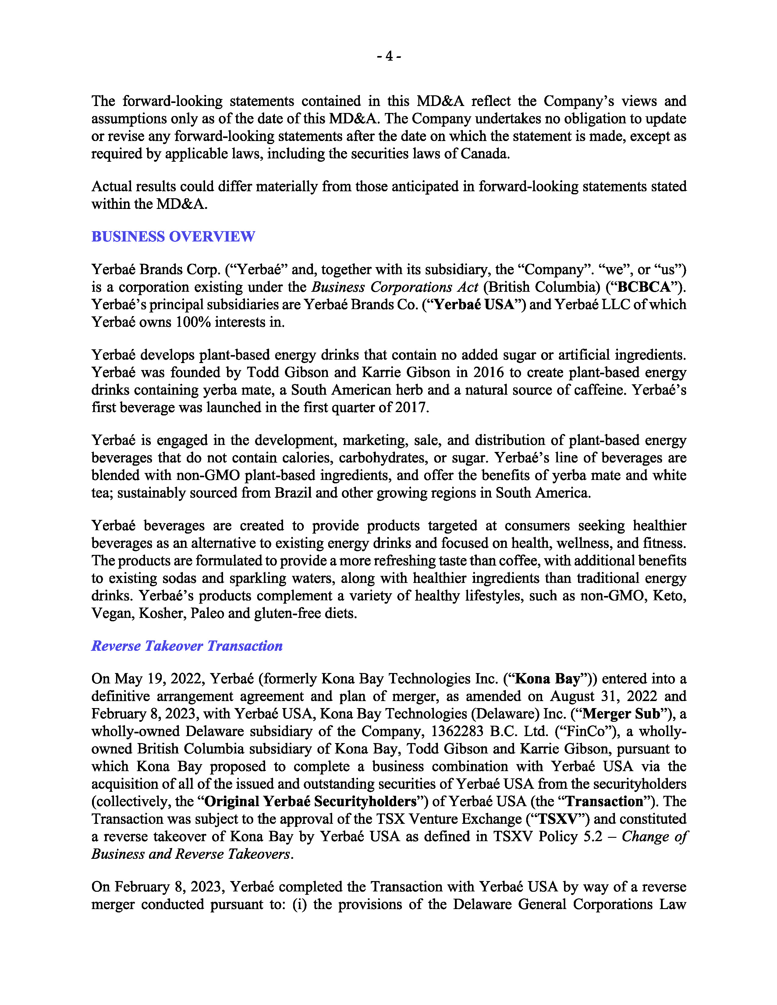 Yerbaé is engaged in the development, marketing, sale, and distribution of plant-based energy beverages that do not contain calories, carbohydrates, or sugar. Yerbaé’s line of beverages are blended with non-GMO plant-based ingredients and offer the benefits of yerba mate and white tea; sustainably sourced from Brazil and other growing regions in South America.