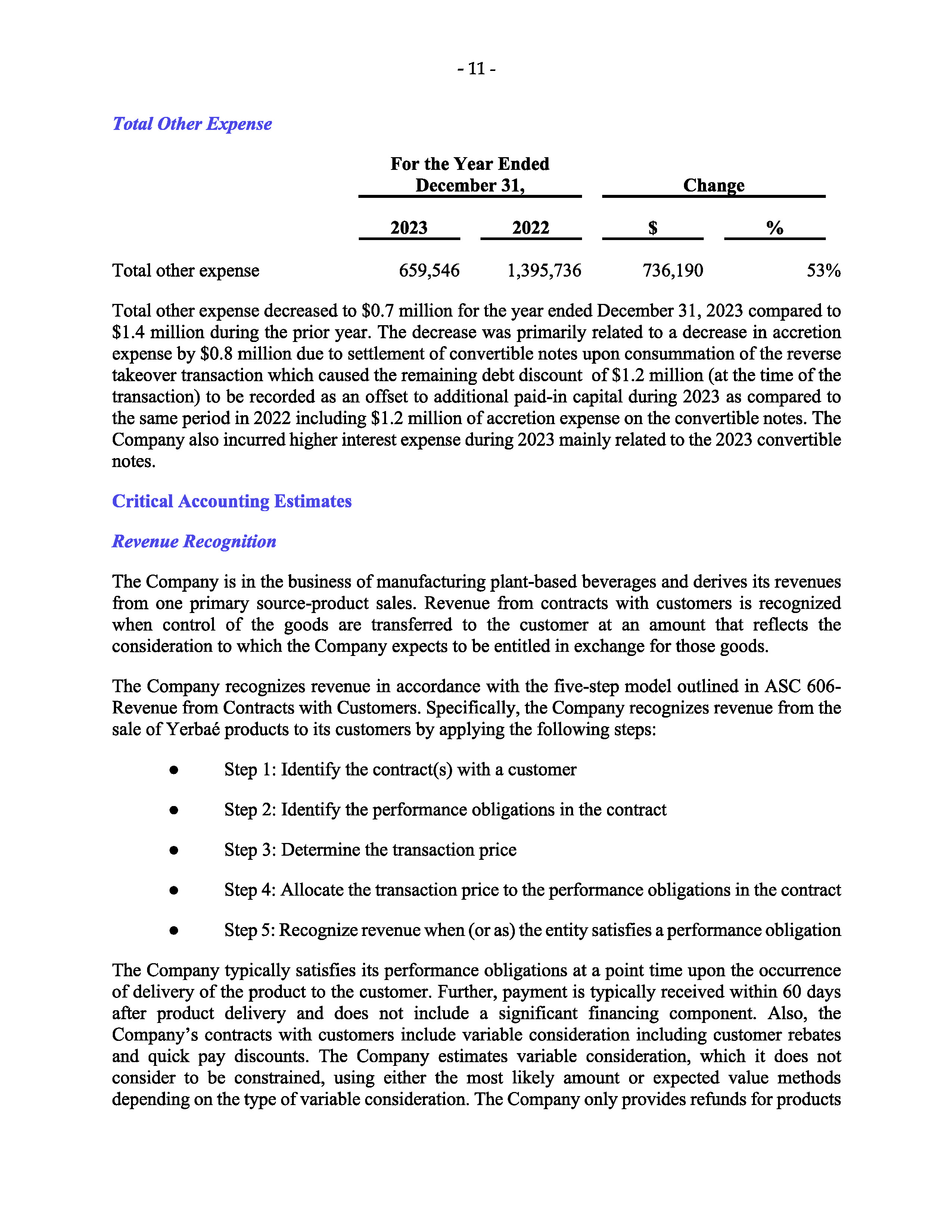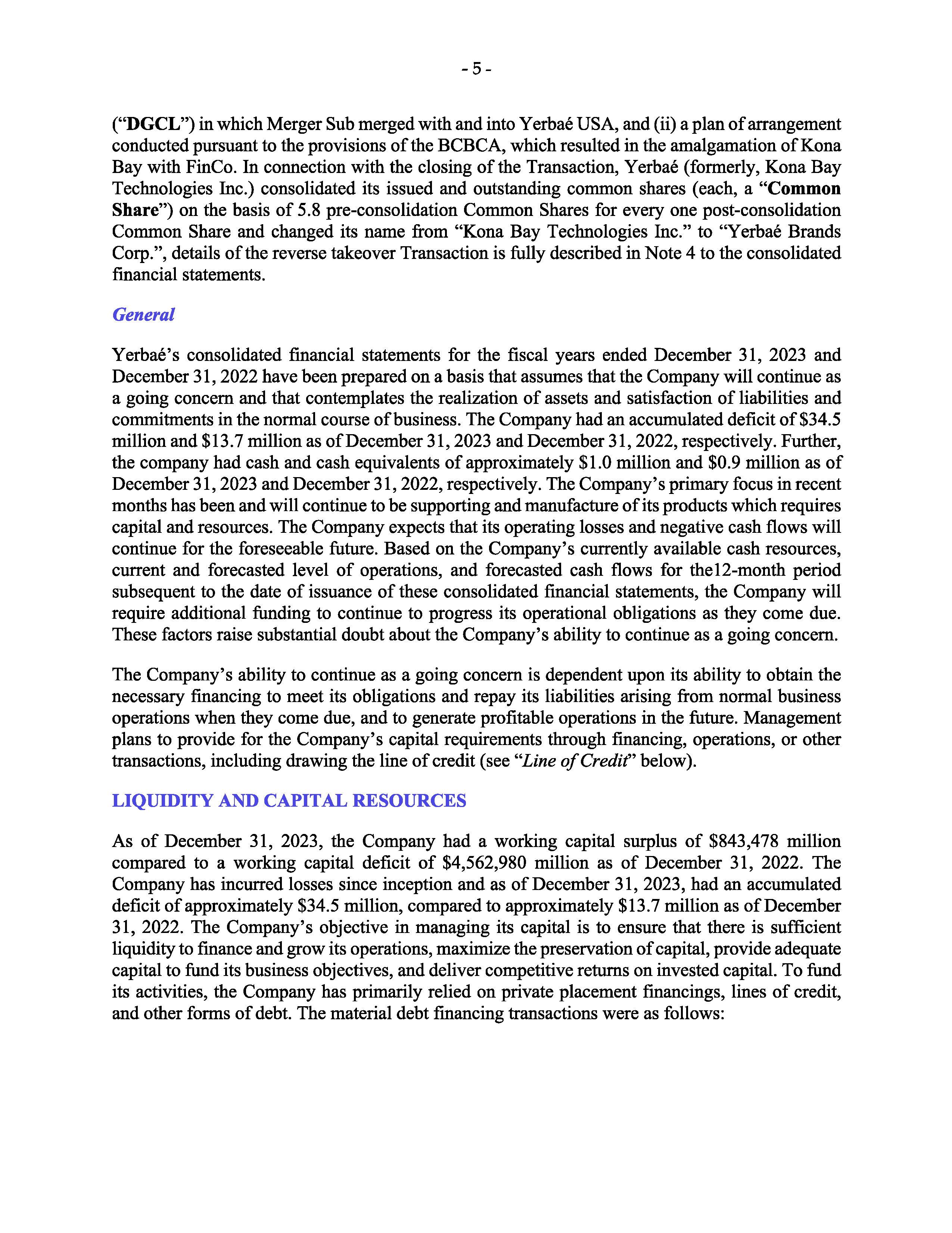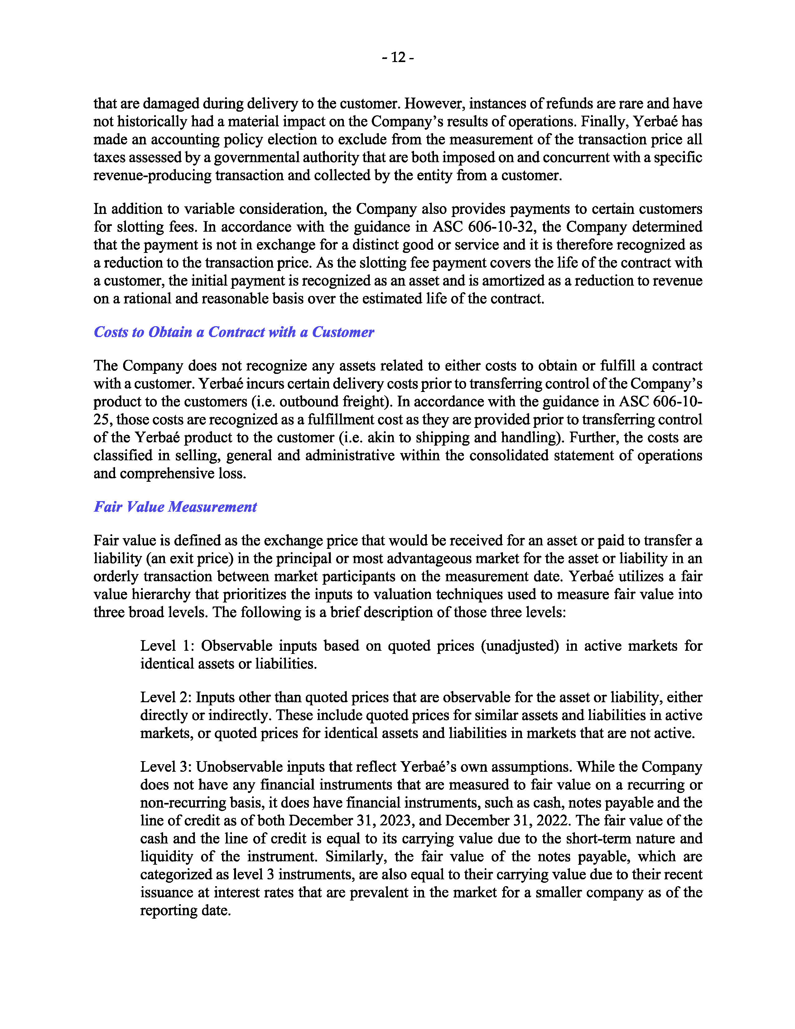 Yerbaé’s evaluation of its ability to continue as a going concern requires it to evaluate its future sources and uses of cash sufficient to fund its currently expected operations in conducting business activities one year from the date the financial statements are issued. Yerbaé evaluates the probability associated with each source and use of cash resources in making its going concern determination.