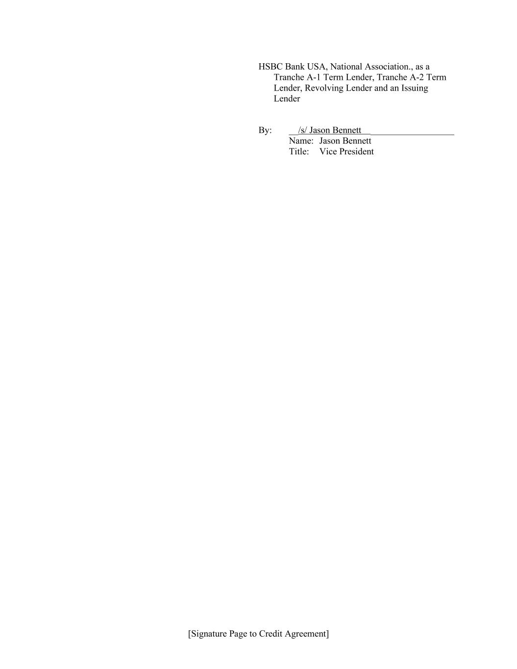 [Signature Page to Credit Agreement] HSBC Bank USA, National Association., as a Tranche A-1 Term Lender, Tranche A-2 Term Lender, Revolving Lender and an Issuing Lender By: __/s/ Jason Bennett __________________ Name: Jason Bennett Title: Vice President